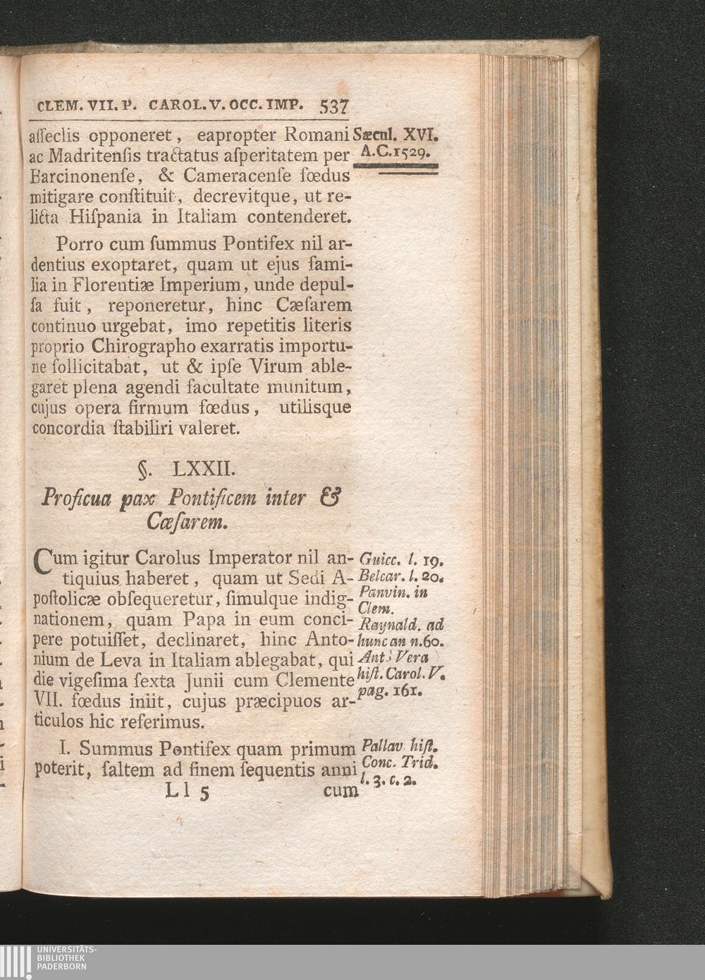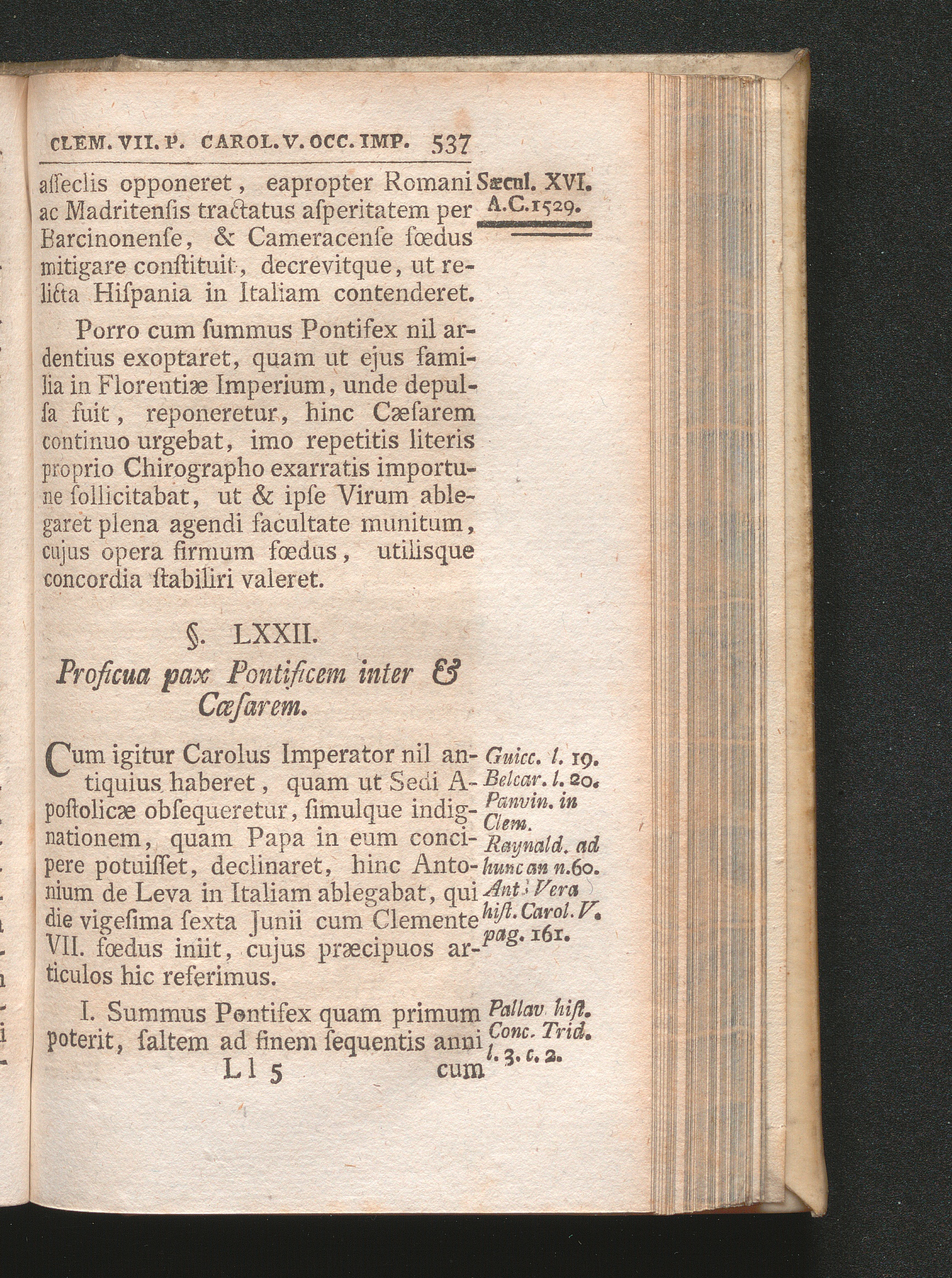 §. 72. Prosicua pax, Pontificem inter & Cæsarem.