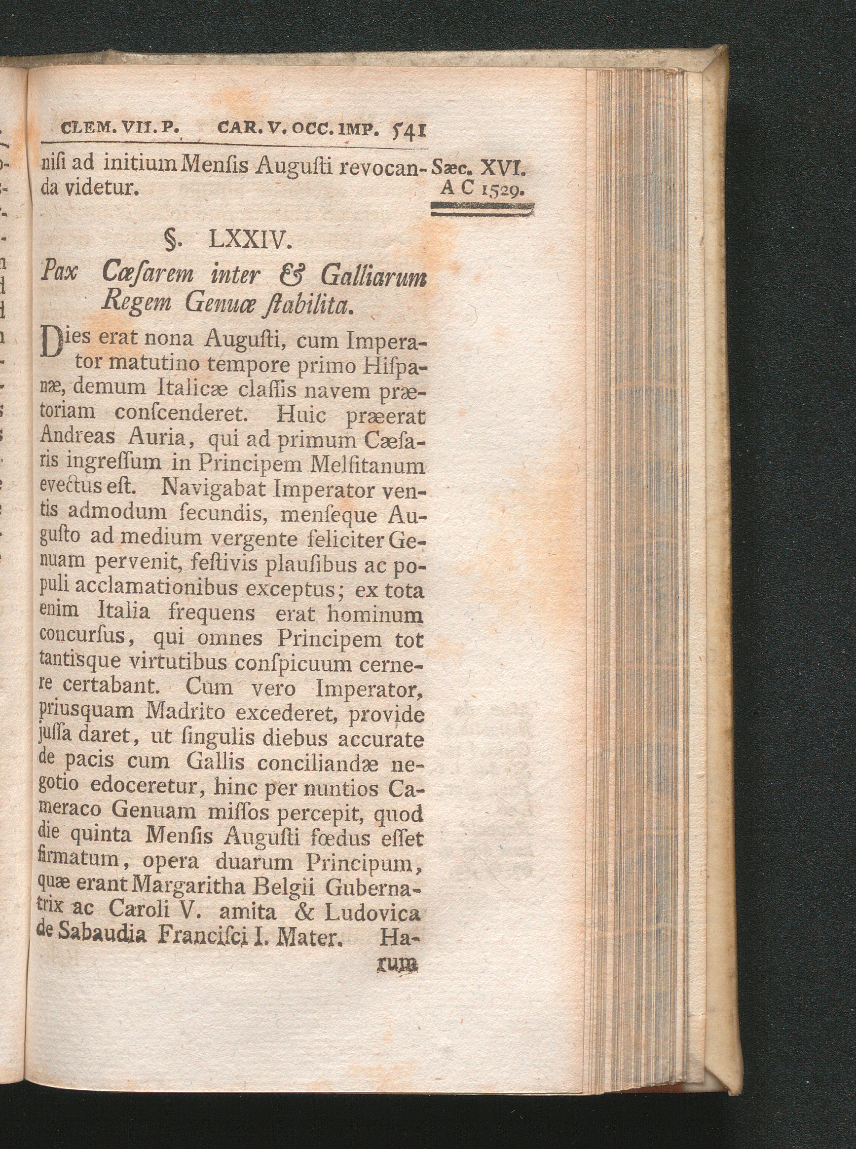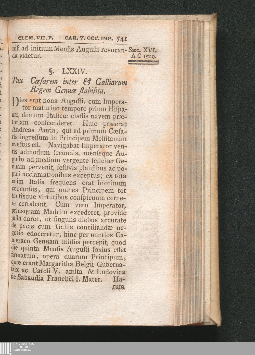 §. 74. Pax Cæsarem inter & Galliarum Regem Genuæ stabilita.