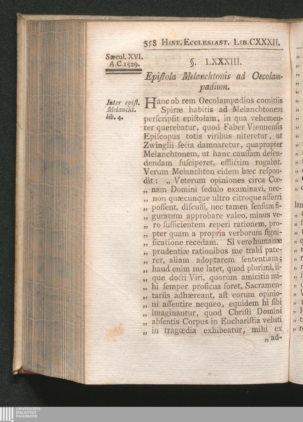 §. 83. Epistola Melanchtonis ad Oecolampadium.