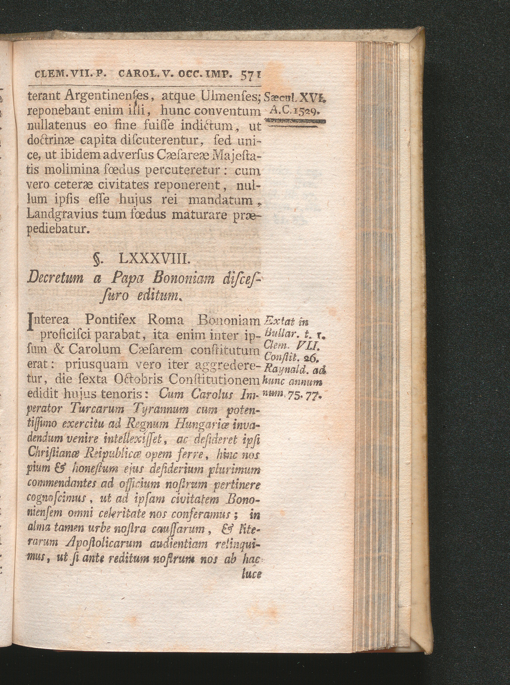 §. 88. Decretum a Papa Bononiam discessuro editum.