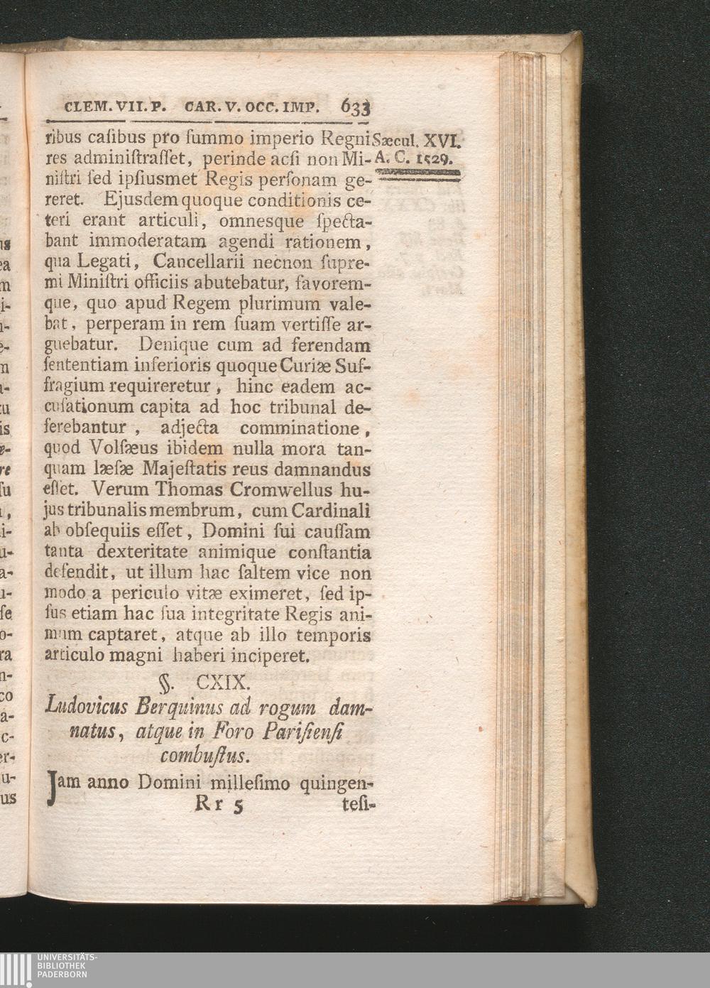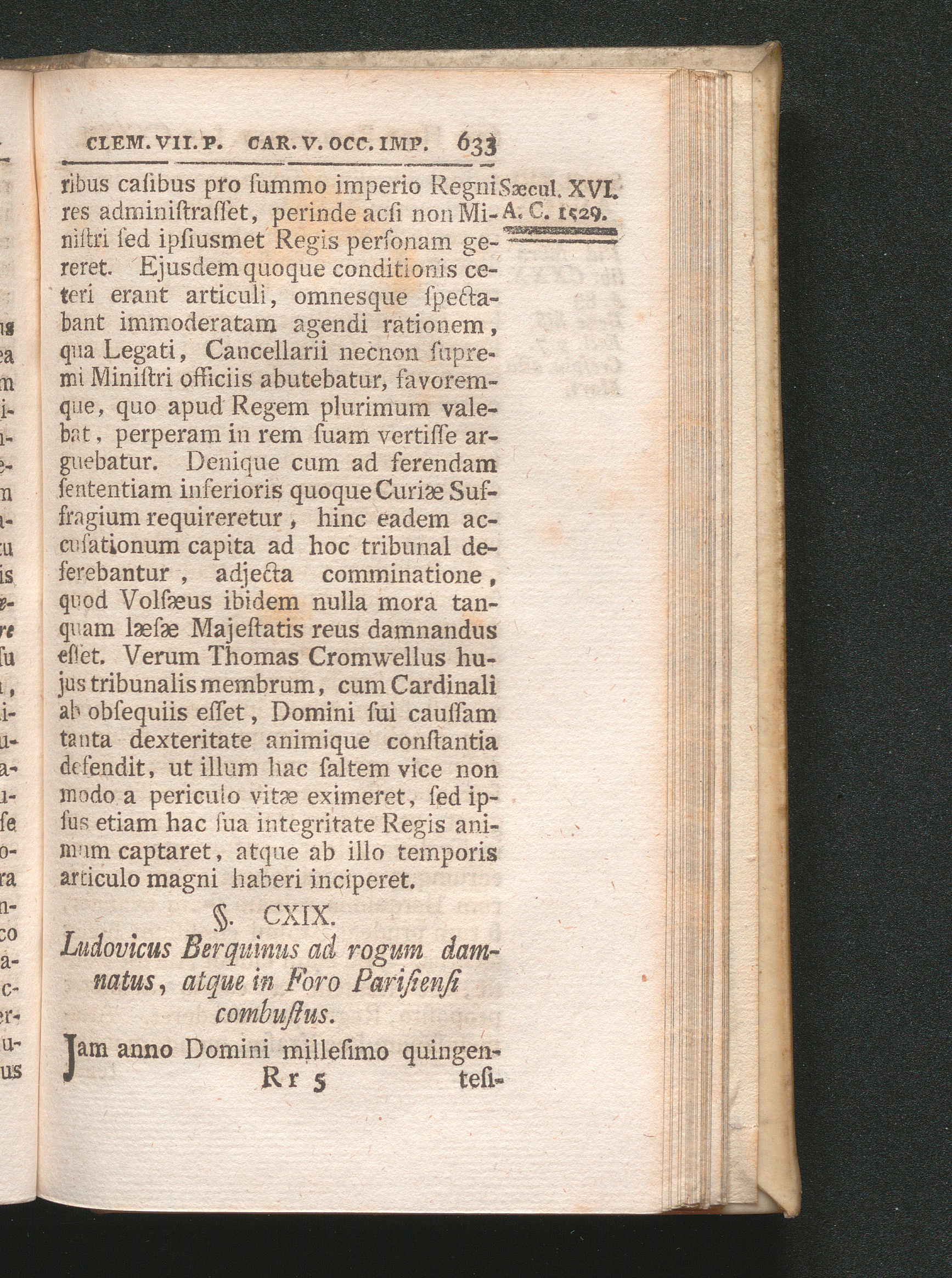 §. 119. Ludovicus Berquinus ad rogum damnatus, atque in foro Parisiensi combustu[...]