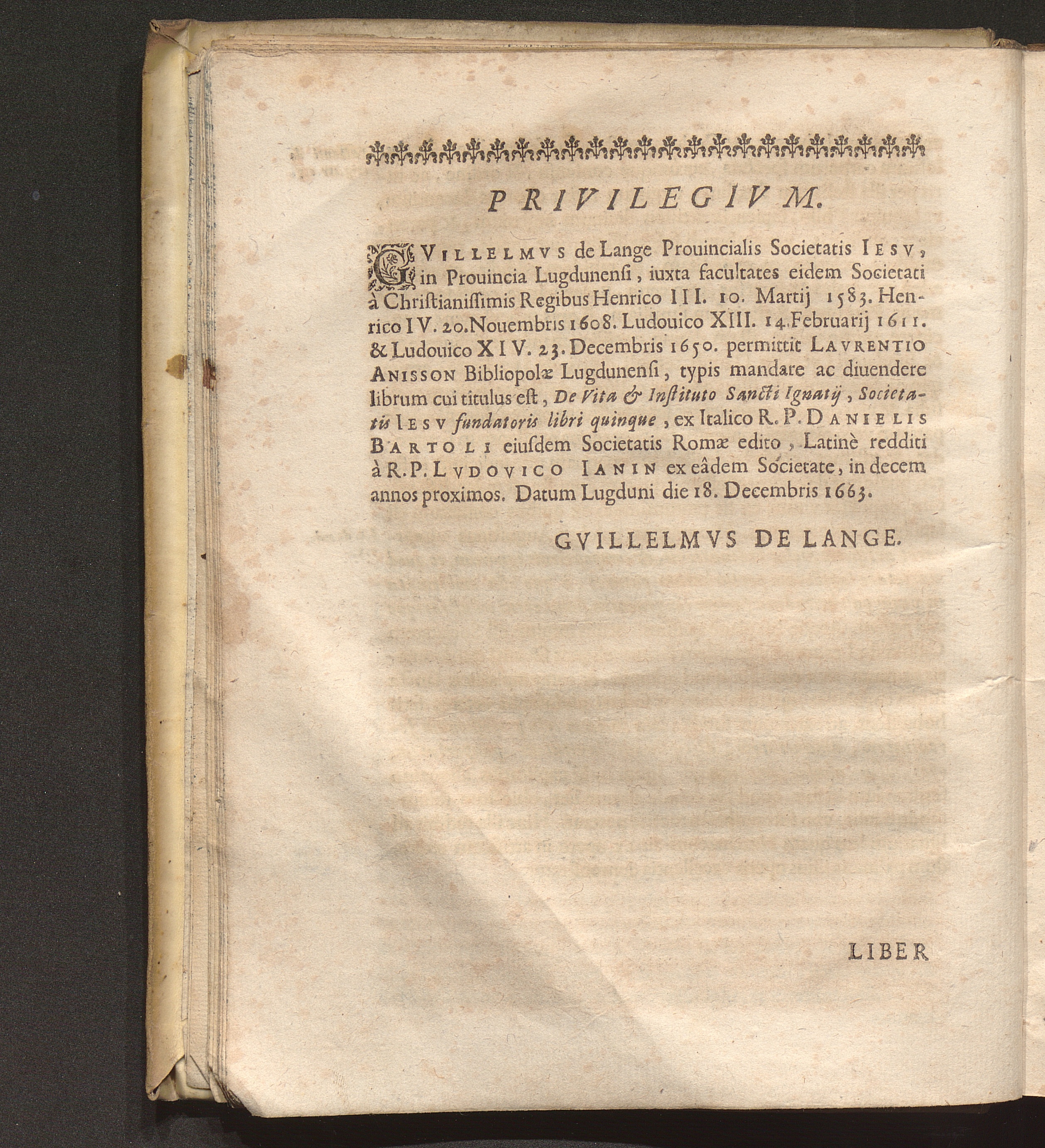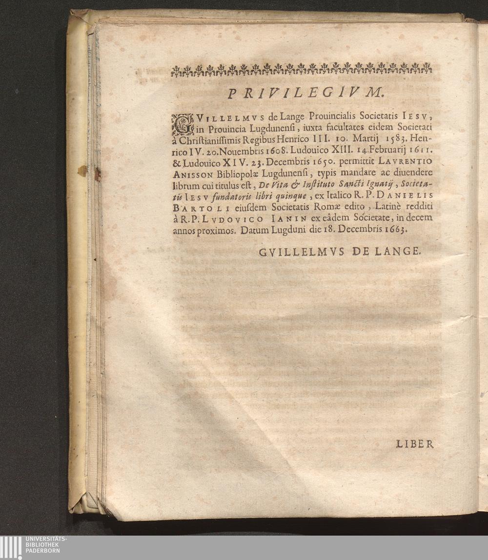 De Vita Et Institvto S. Ignatii Societatis Iesv Fvndatoris. Libri Qvinqve / Ex Italico R. P. Danielis Bartoli Societatis Iesv, Romae edito. Latinè redditi à P. Ludovico Ianino ex eadem Societate