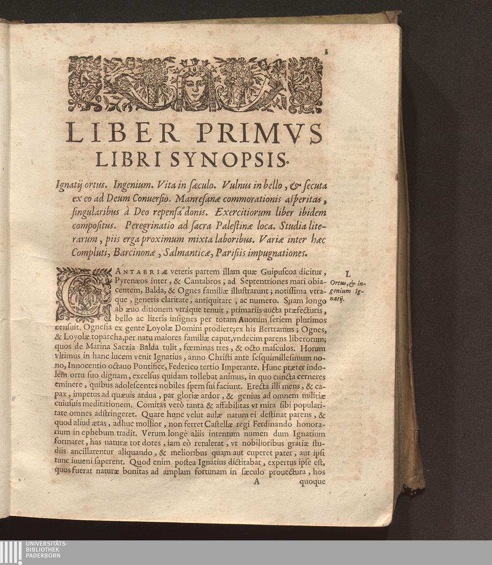 I. Ortus, & ingenium Ignatij.