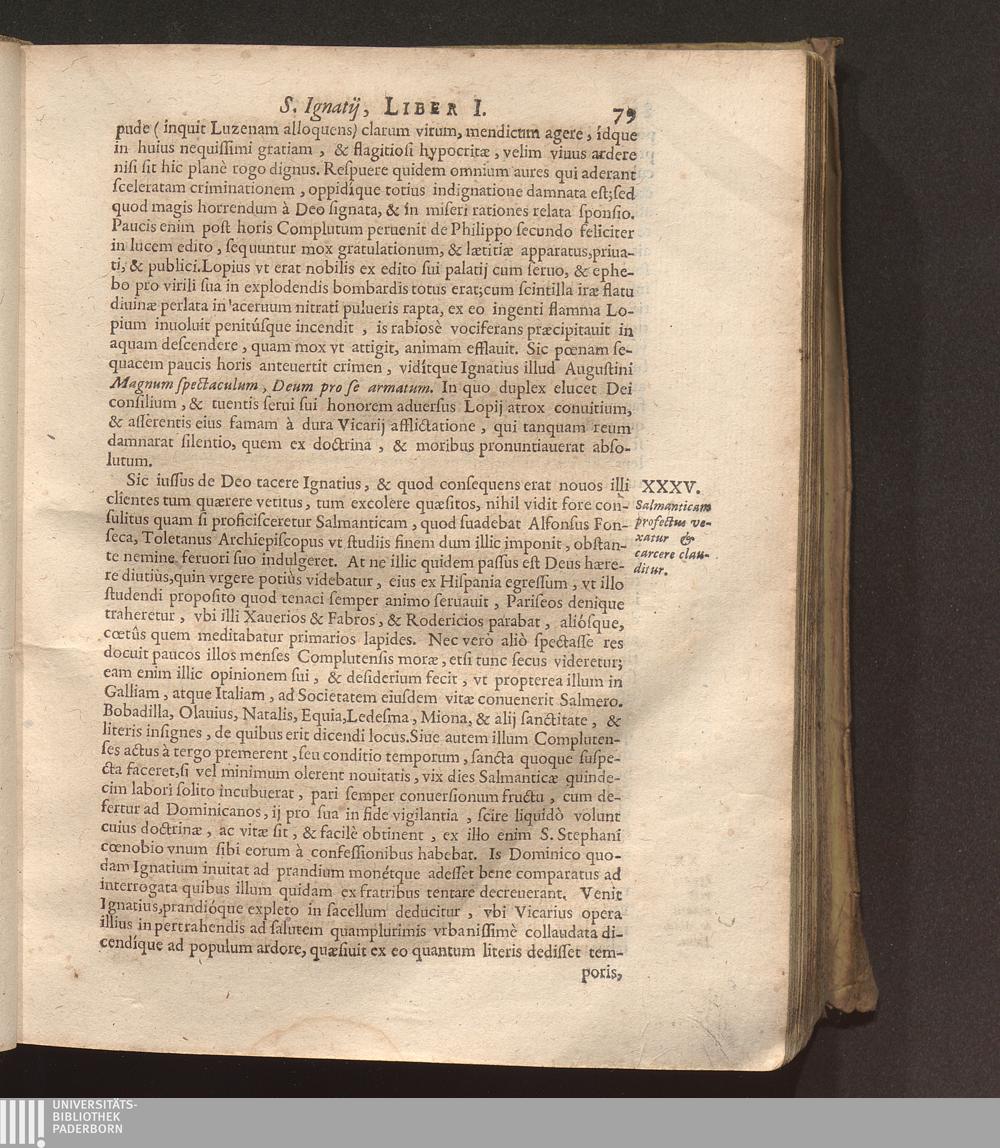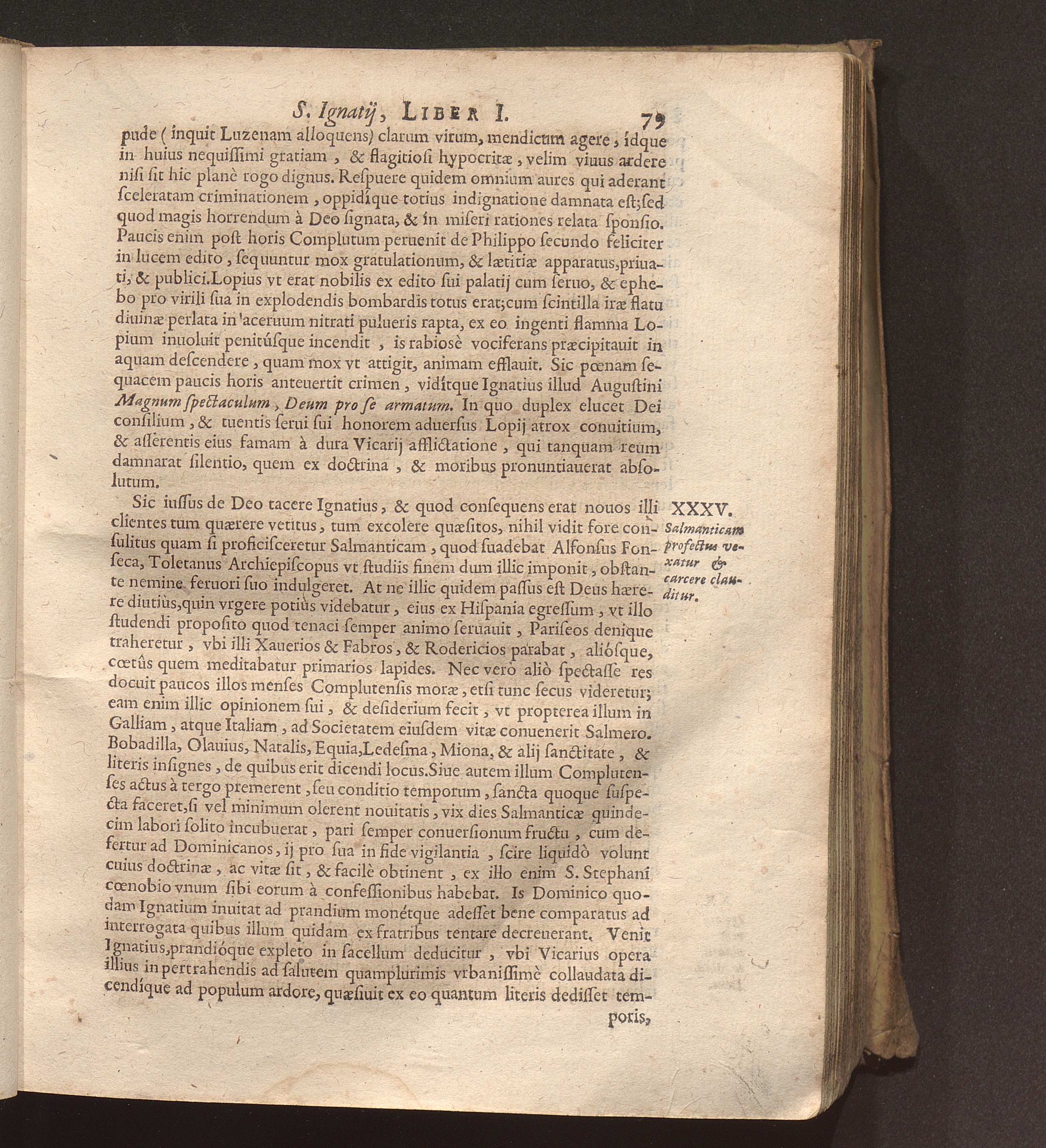 XXXV. Salmanticam profectus vexatur & carcere clauditur.