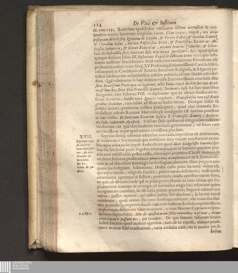 XVII. Septima causa, desertorum malignitas, electorum ex Societate.