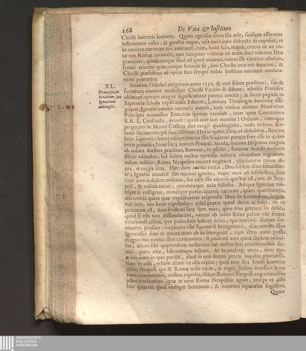 XL. Franciscum Stradam suis Ignatium adiungit.