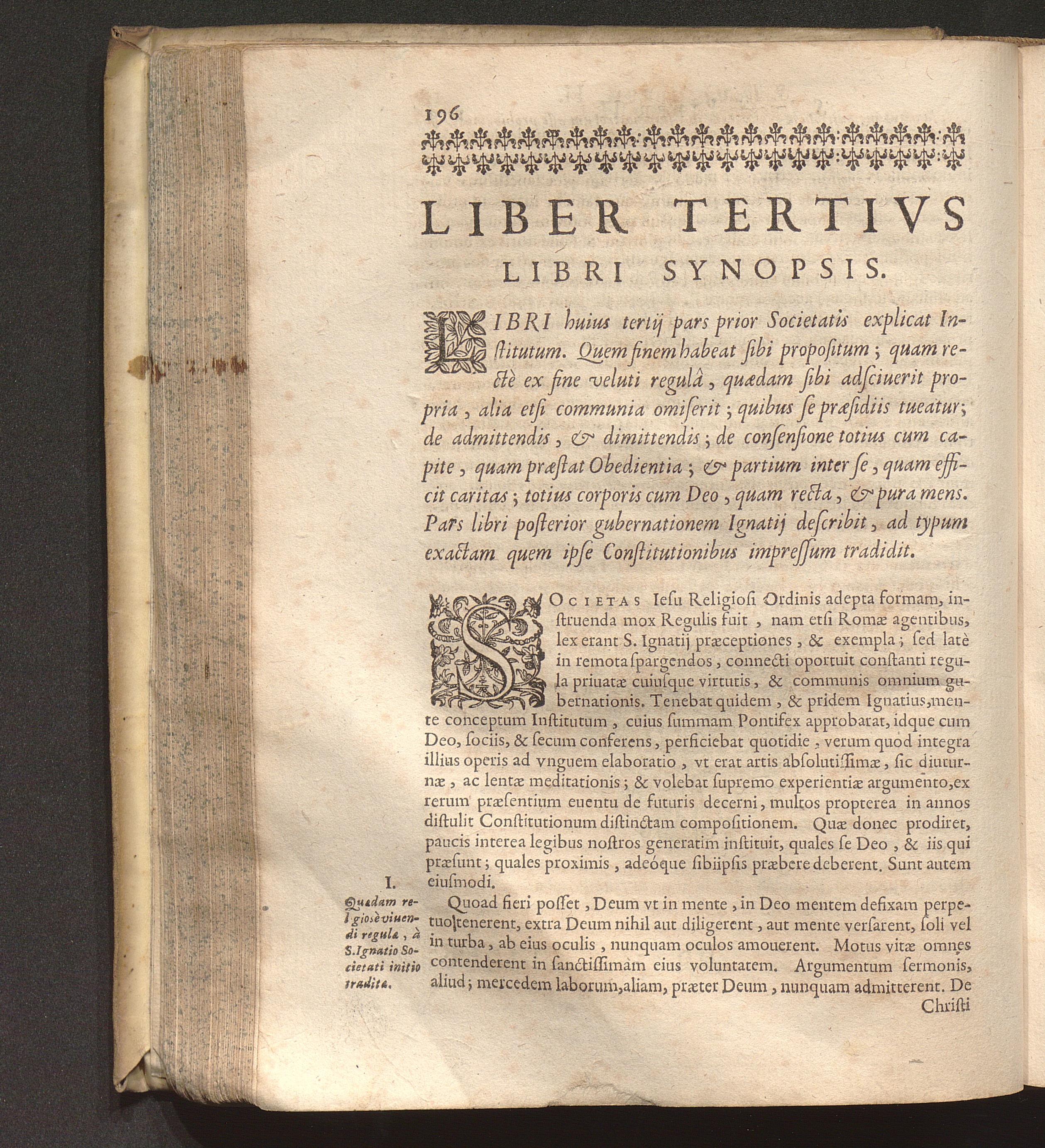 I. Quadam religiosè viuendi regula, à S. Ignatio Societati initio tradita.
