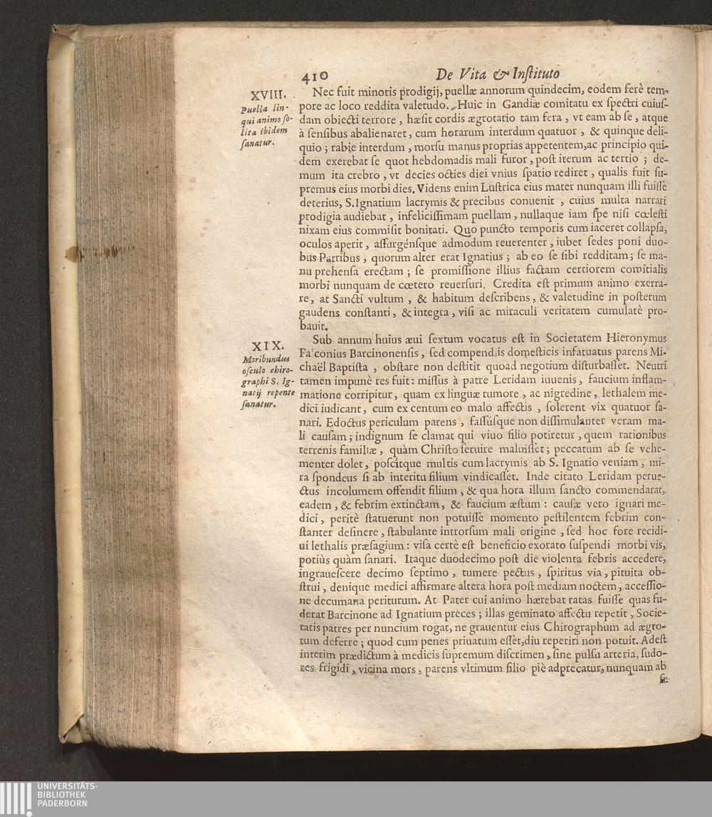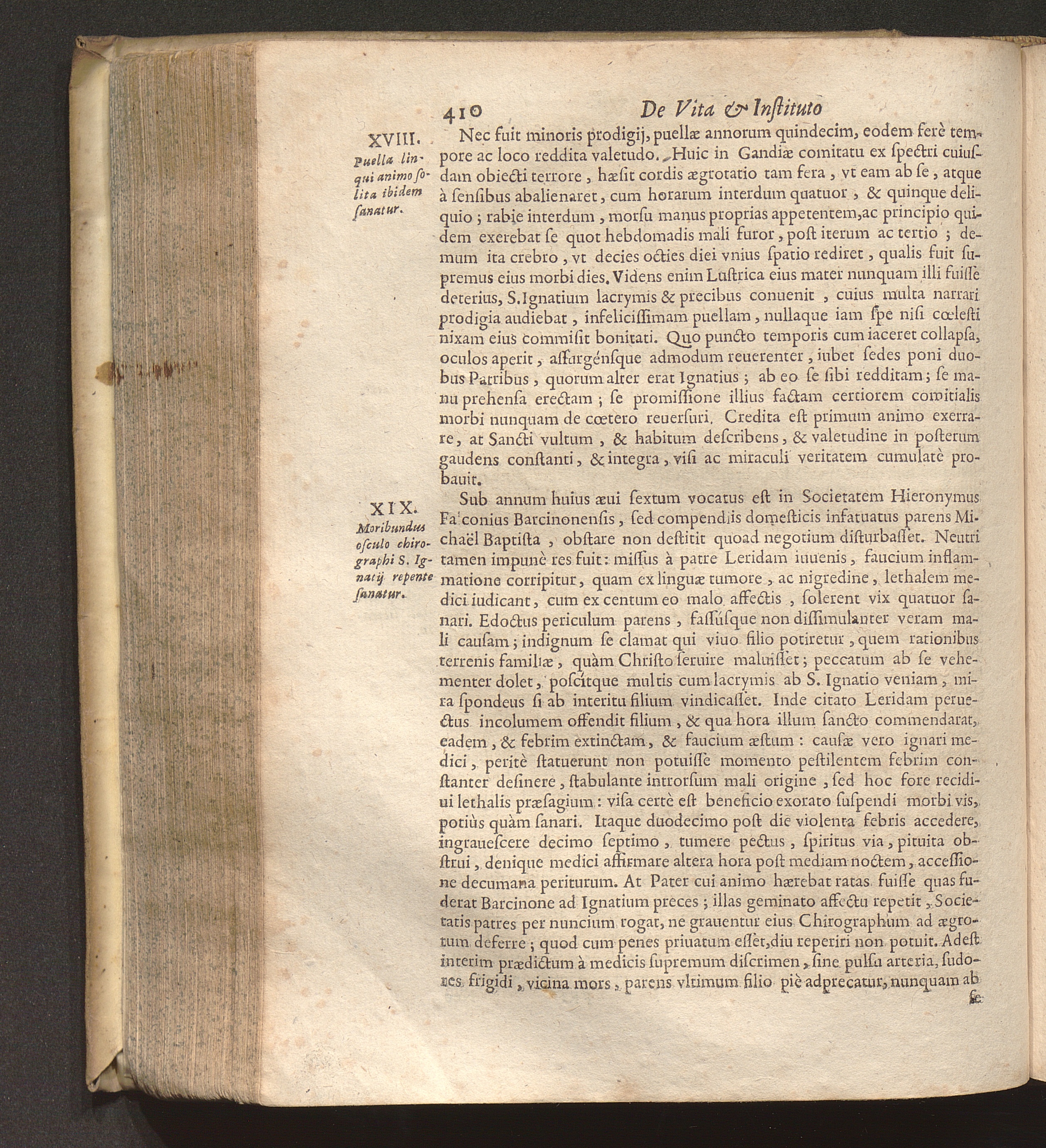 XIX. Moribundus osculo chirographi S. Ignatij repente sanatur.