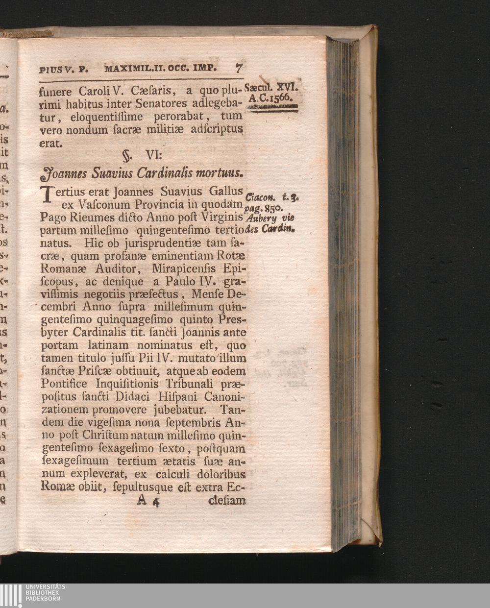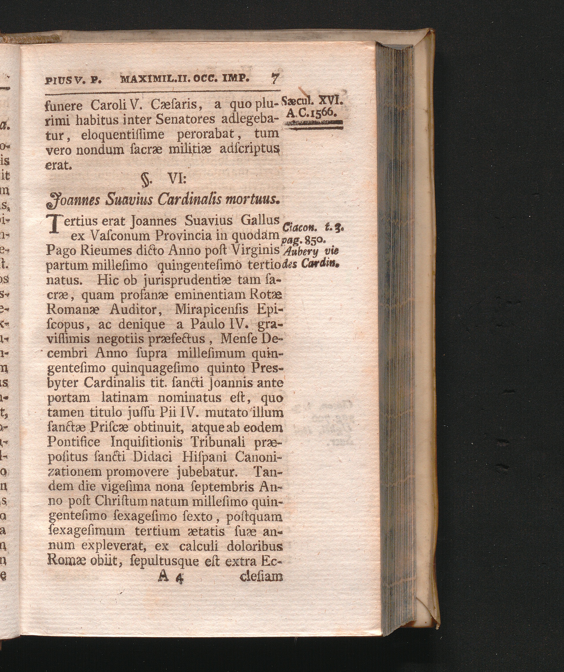 §. 6. Joannes Suavius Cardinalis mortuus.