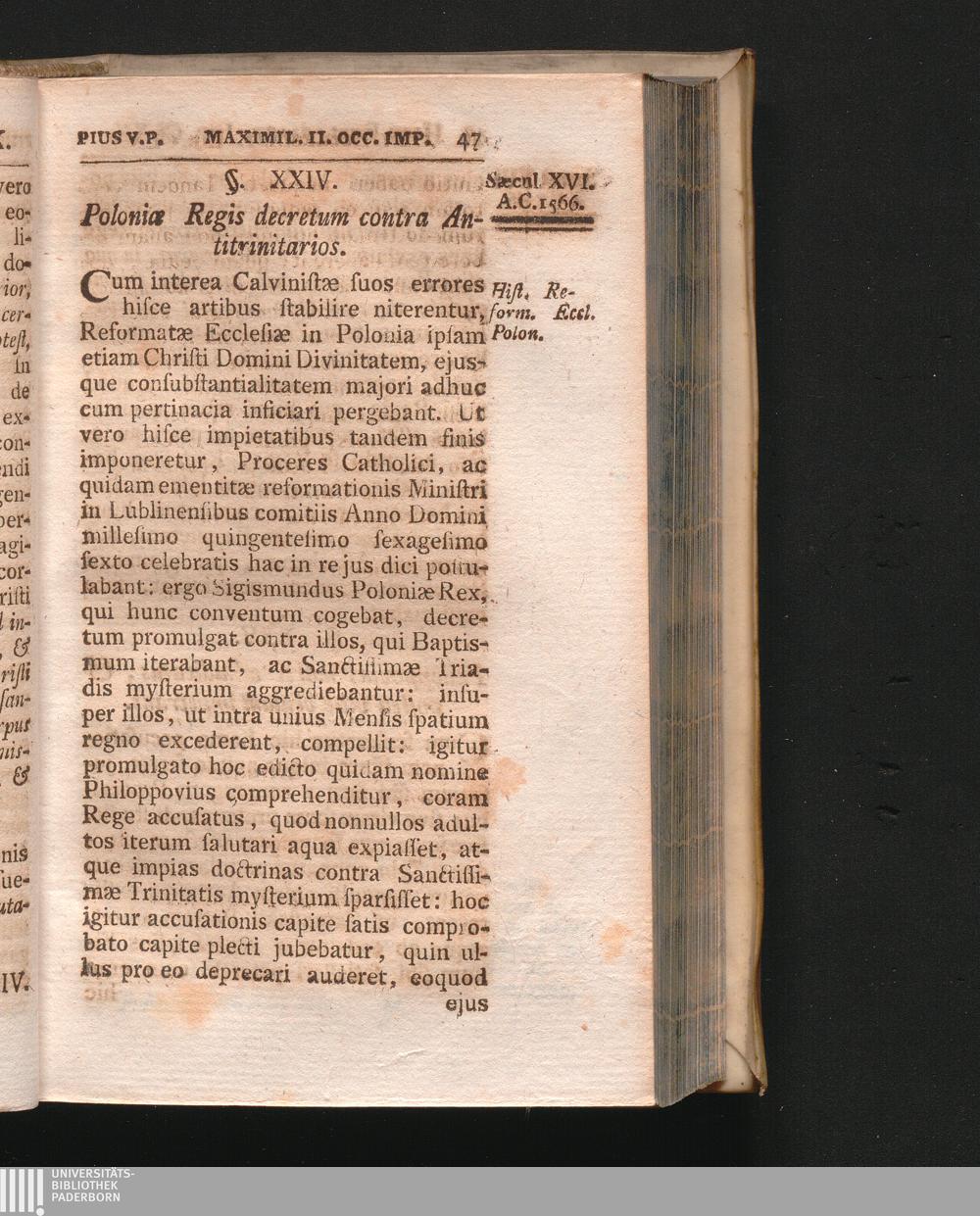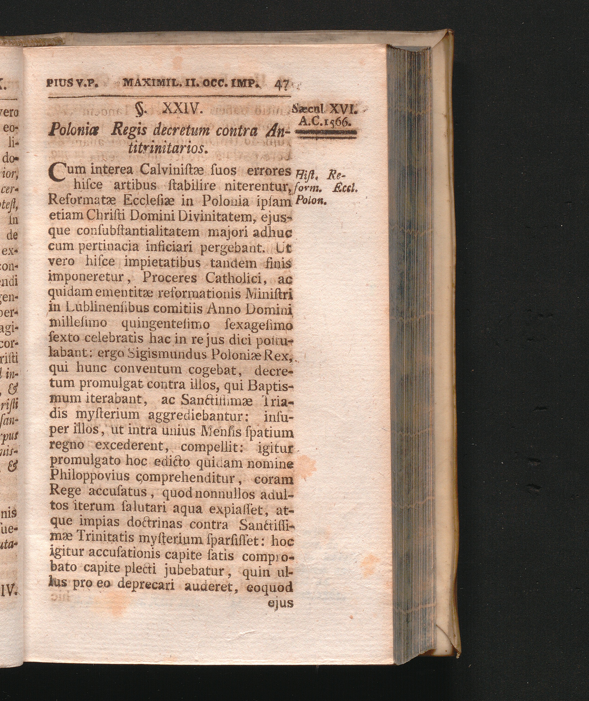 §. 24. Poloniæ Regis decretum contra Antitrinitarios.