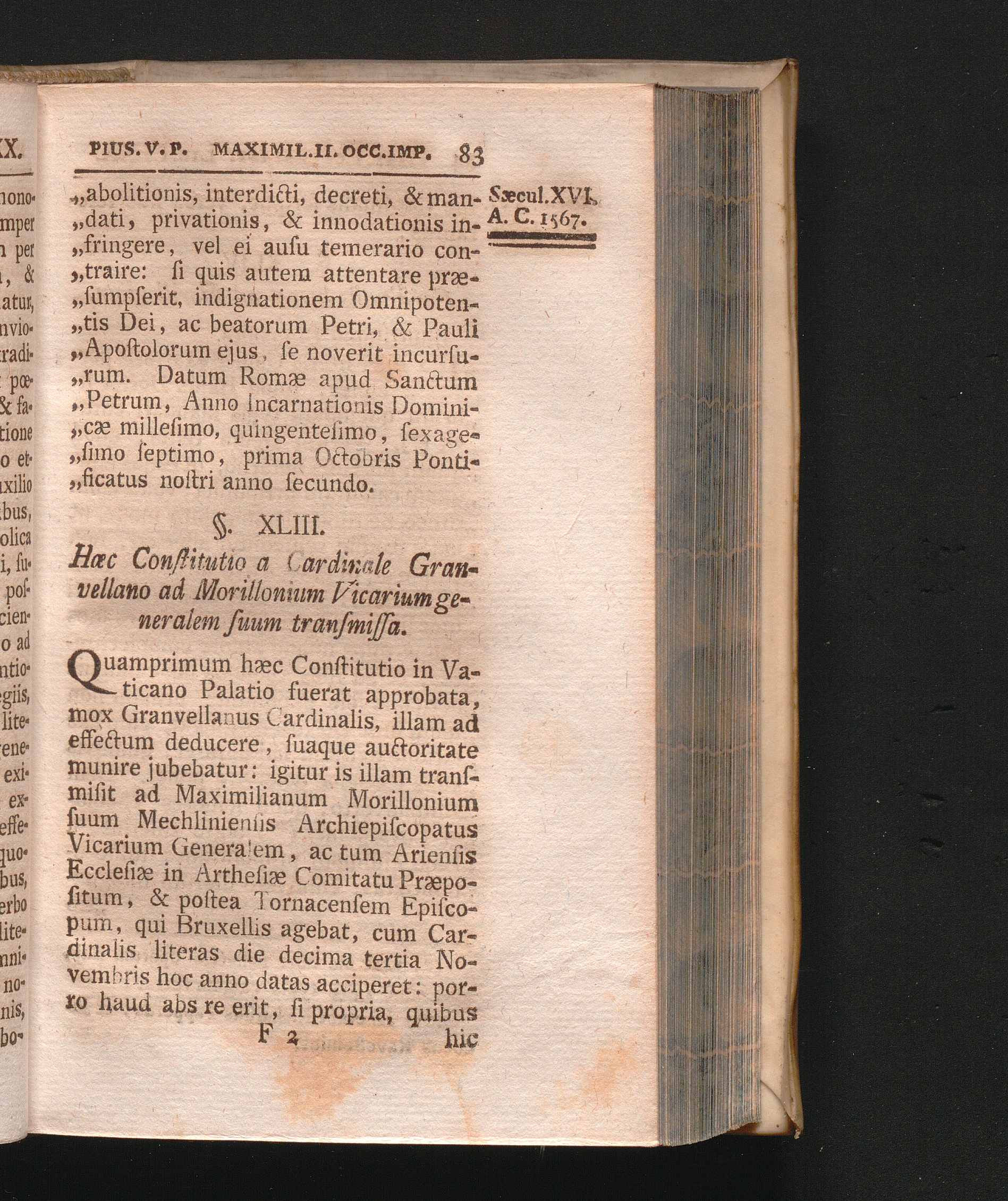 §. 43. Hæc Constitutio a Cardinale Granvellano ad Morillonium Vicarium Generalem[...]