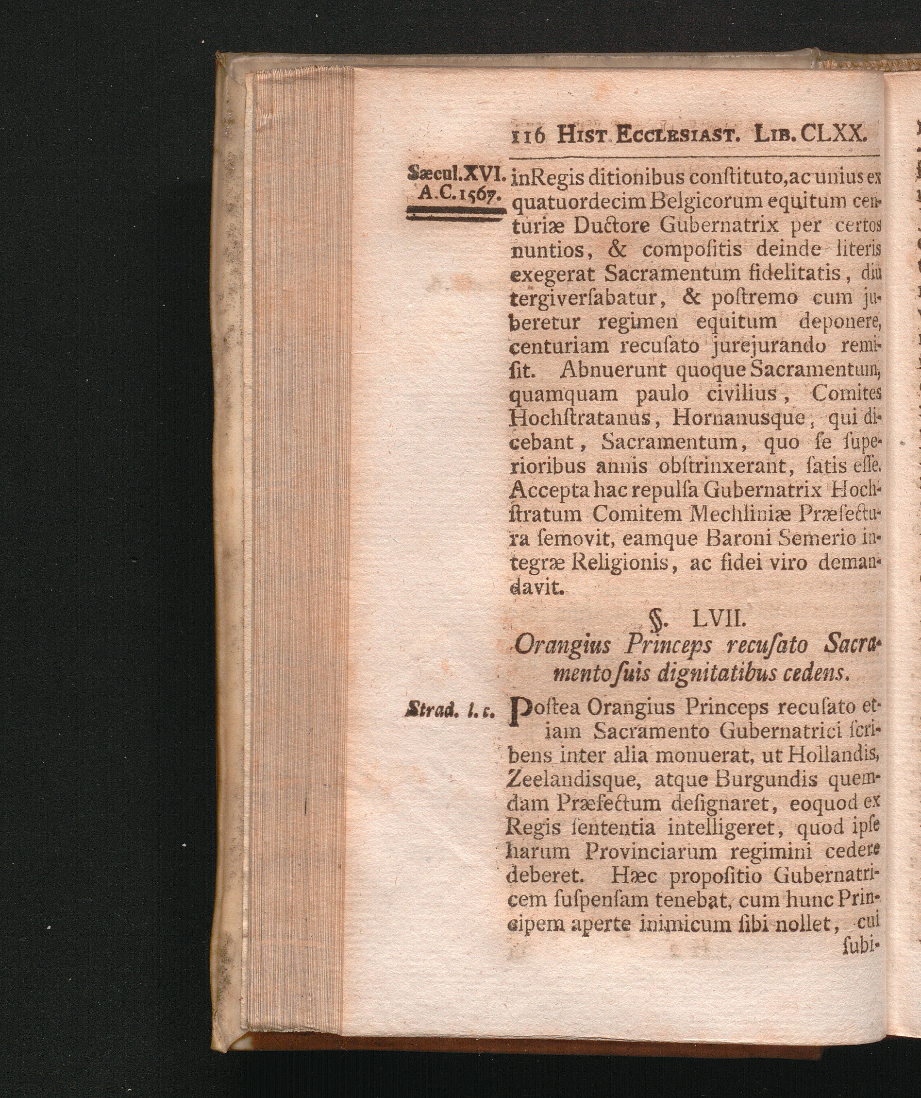 §. 57. Orangius Princeps recusato Sacramento suis dignitatibus cedens.