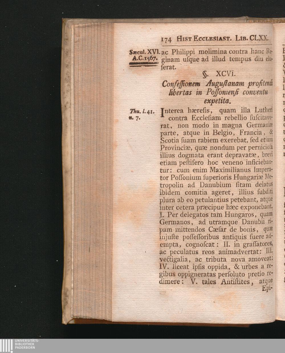 §. 96. Confessionem Augustanam profitendi libertas in Possoniensi Conventu expet[...]