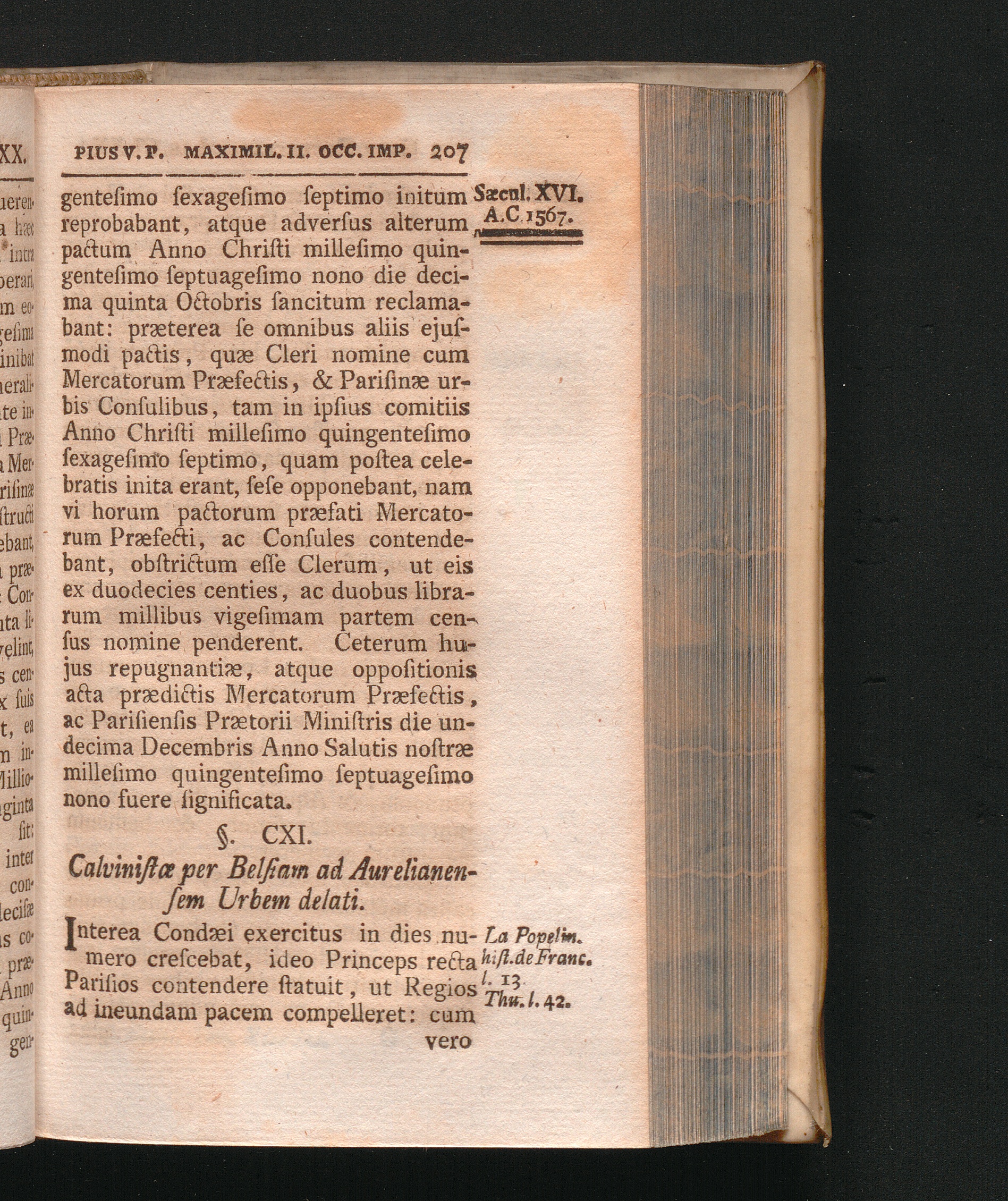§. 111. Calvinistæ per Belsiam ad Aurelianensem Urbem delati.