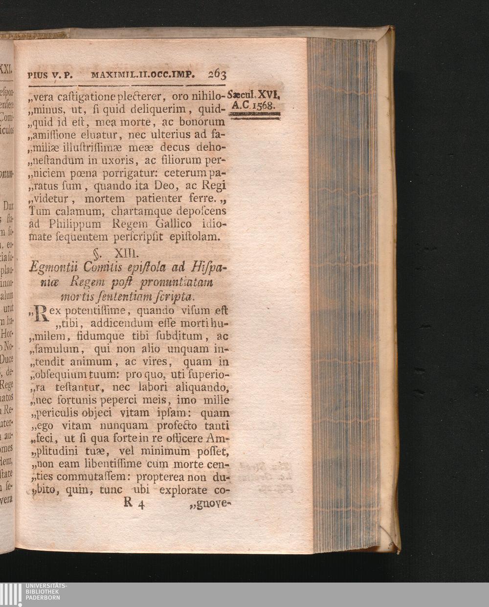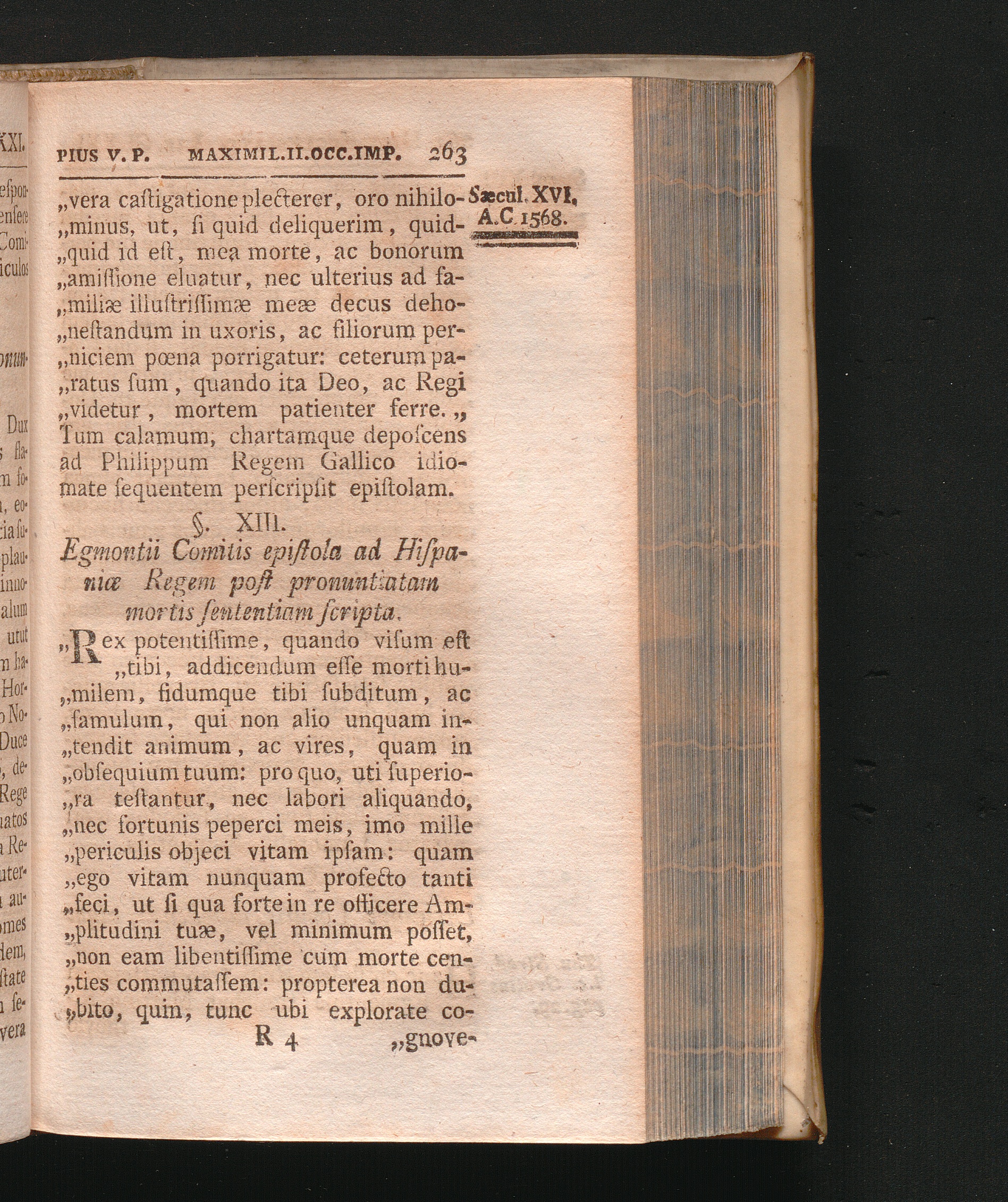 §. 13. Egmontii Comitis epistola ad Hispaniæ Regem post pronuntiatam mortis sententiam[...]