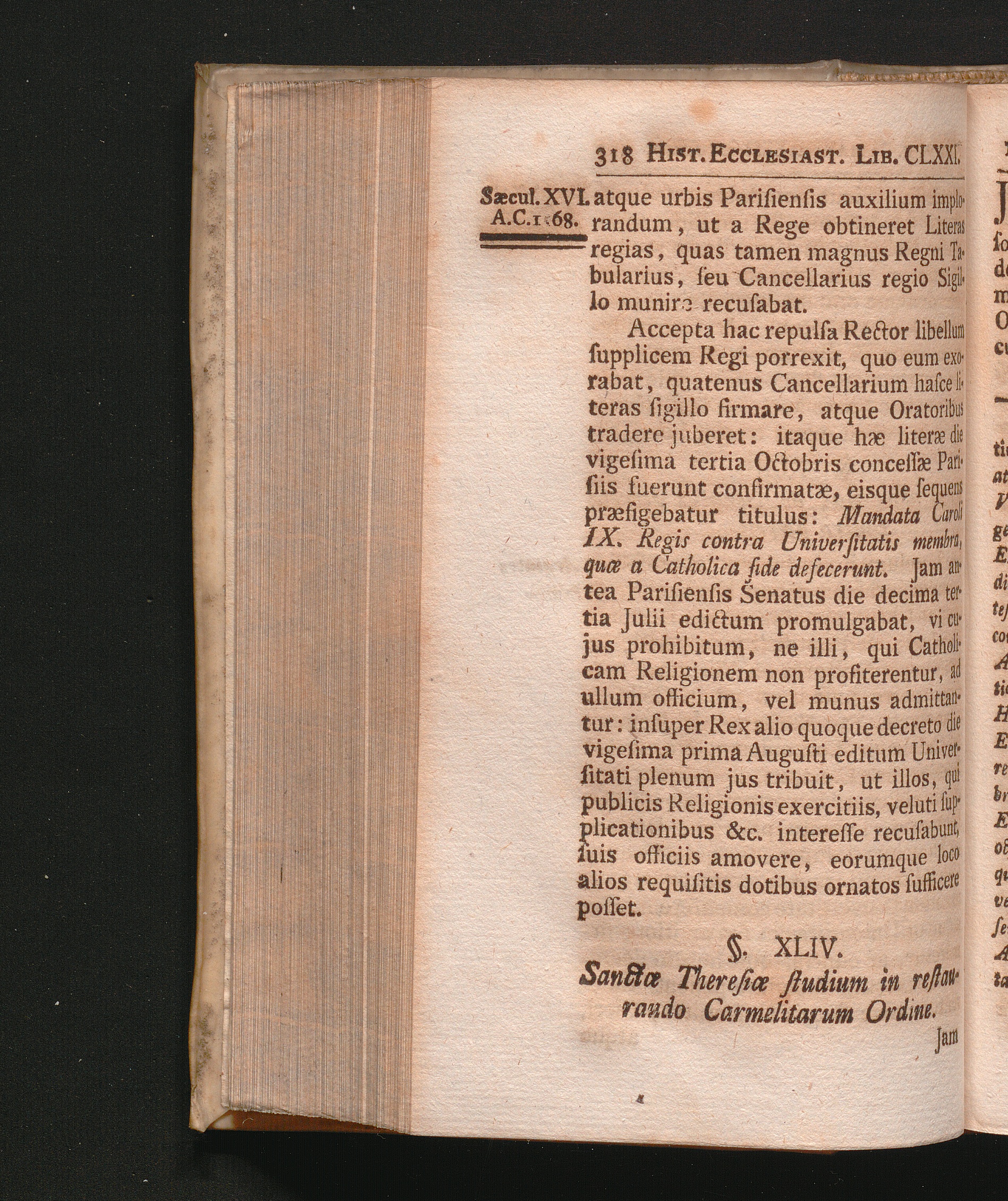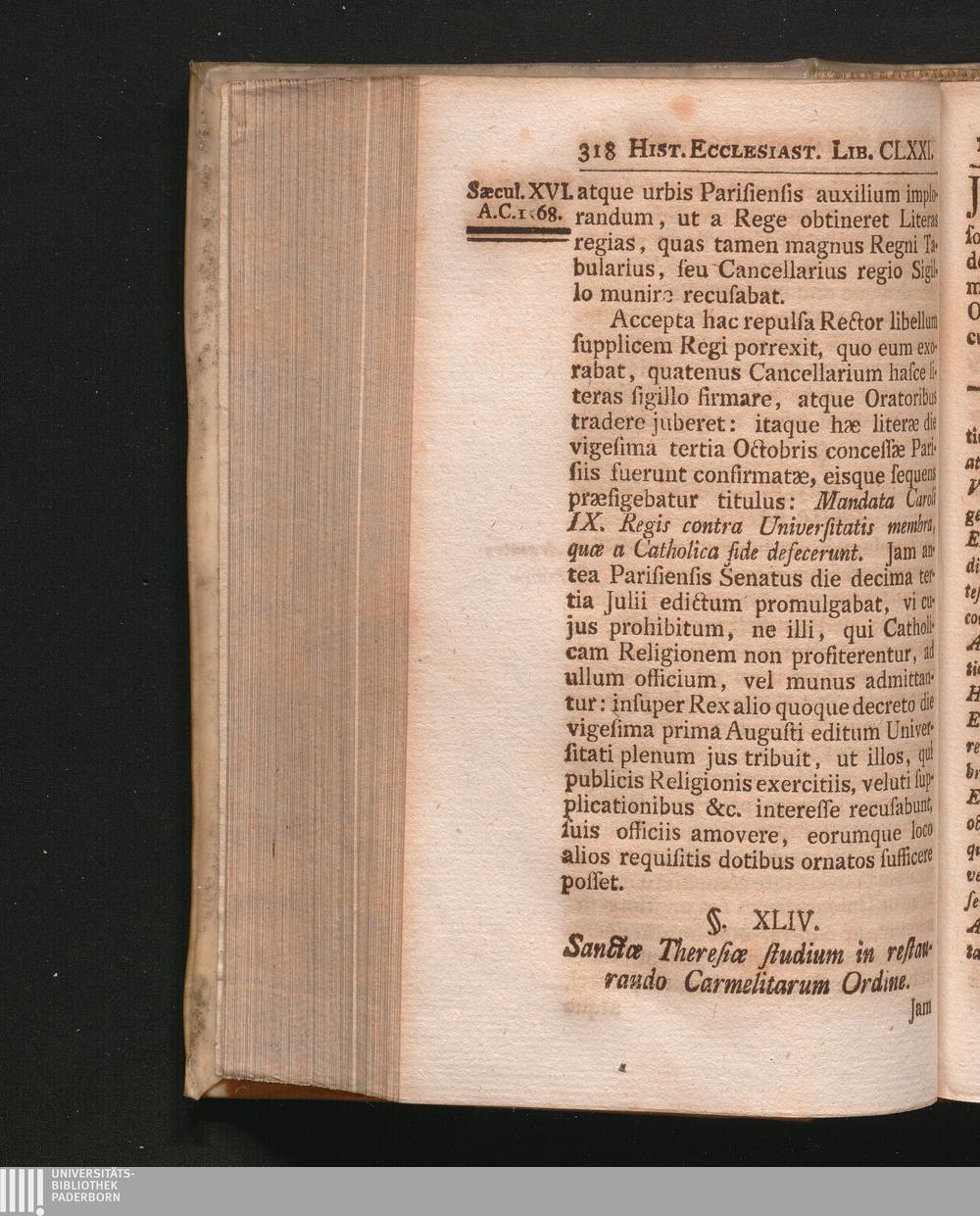 §. 44. Sanctæ Theresiæ studium in restaurando Carmelitarum Ordine.