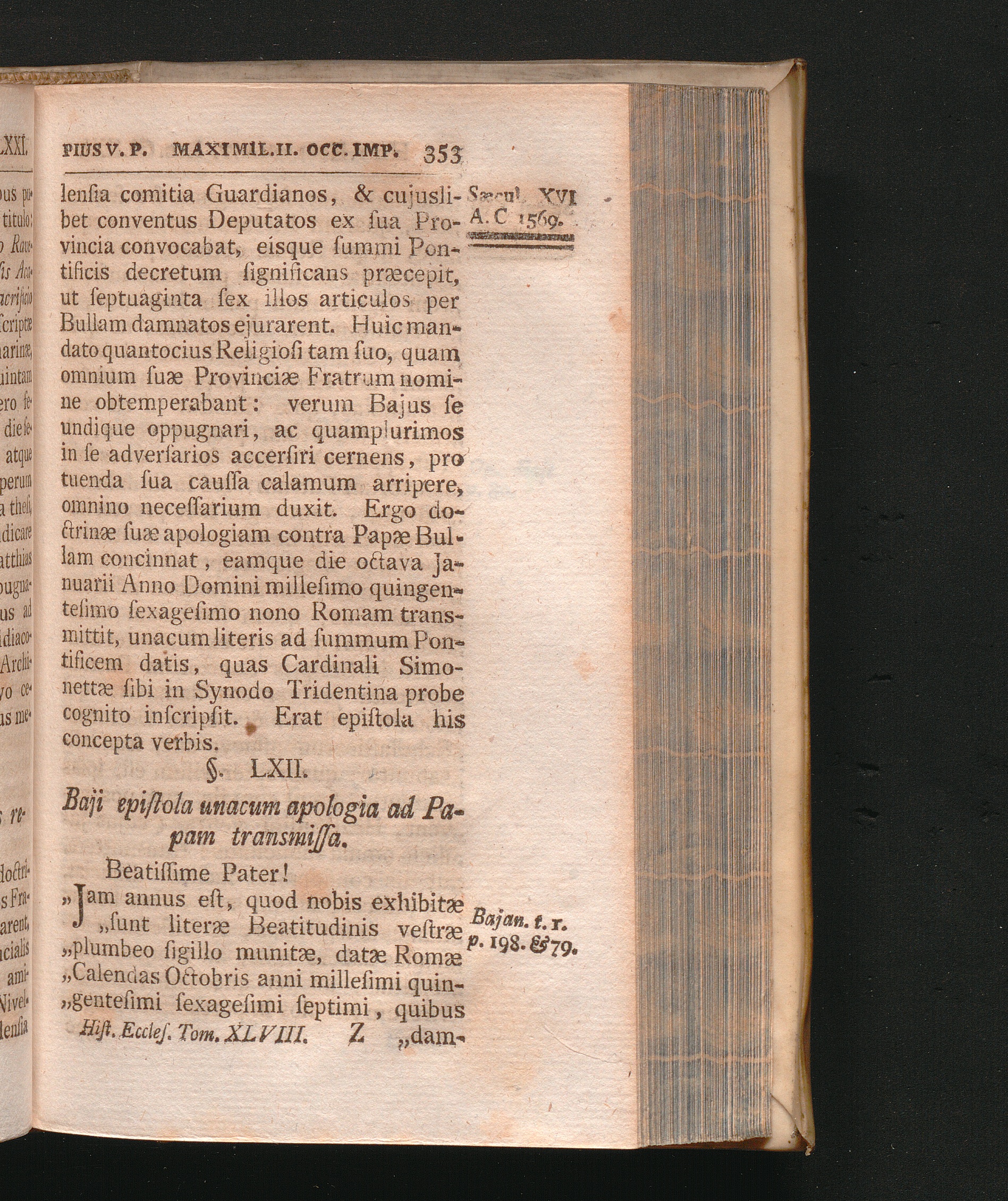 §. 62. Baji epistola unacum apologia ad Papam transmissa.