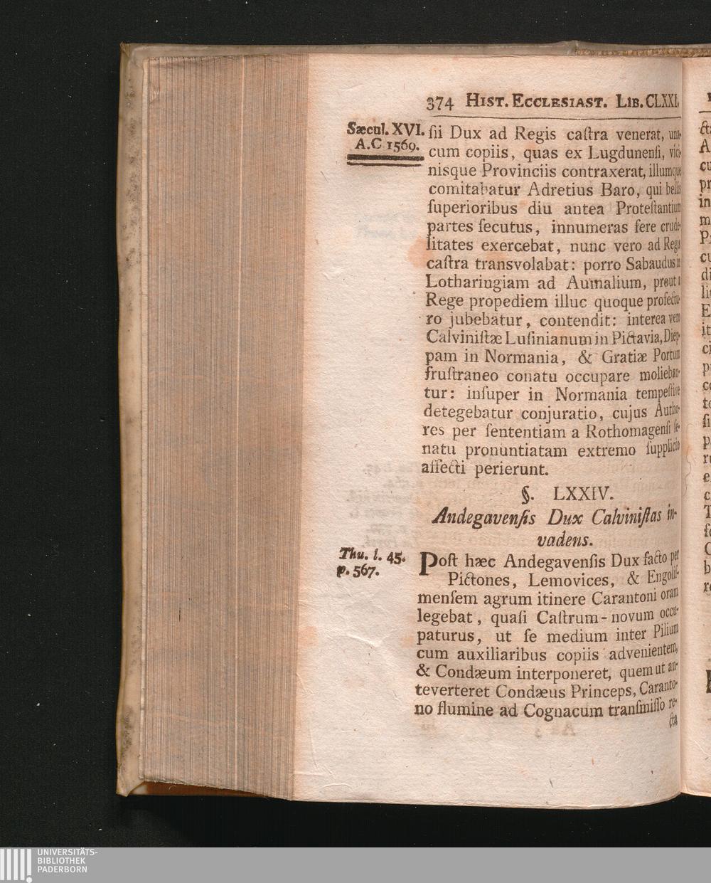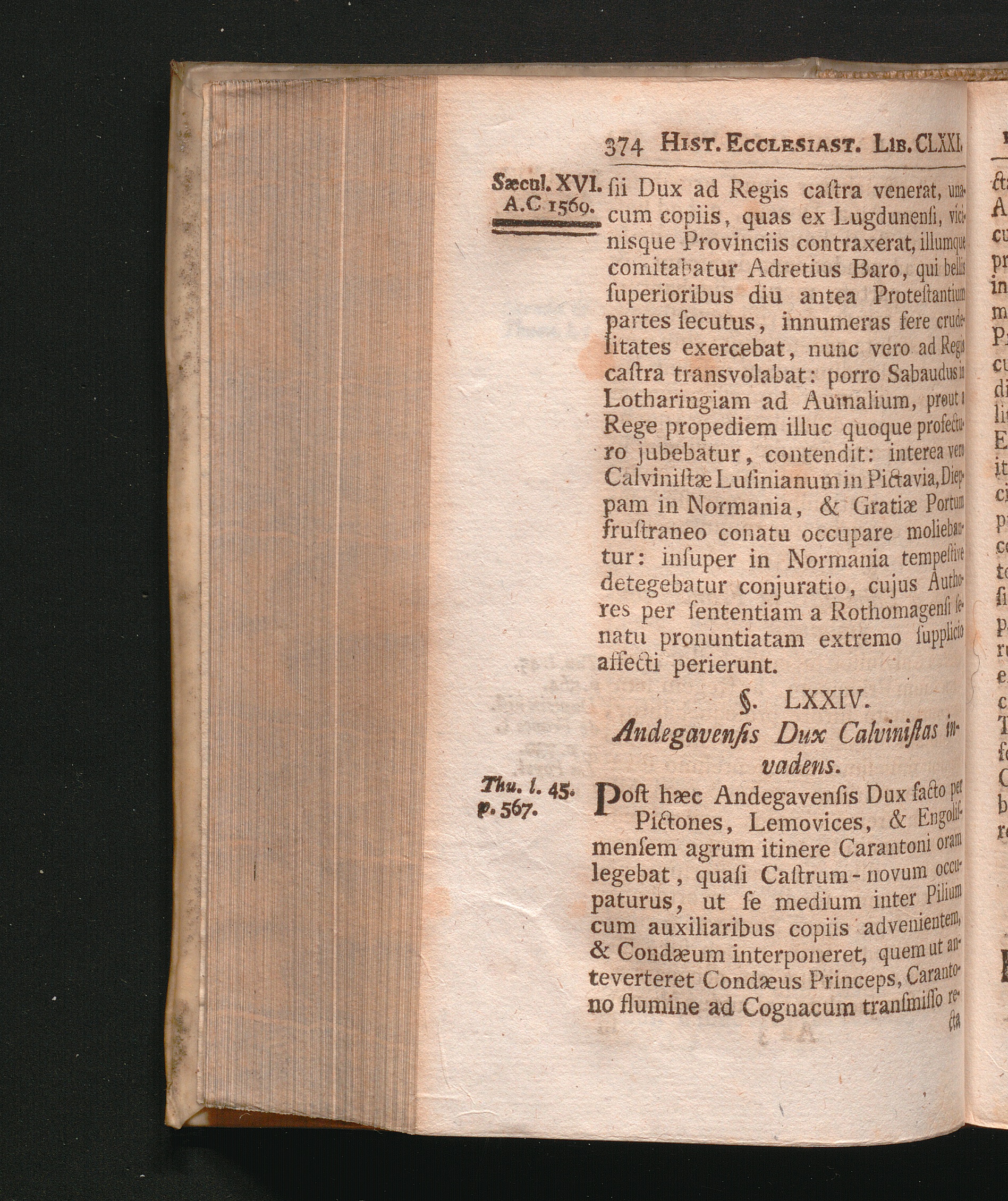 §. 74. Andegavensis Dux Calvinistas invadens.