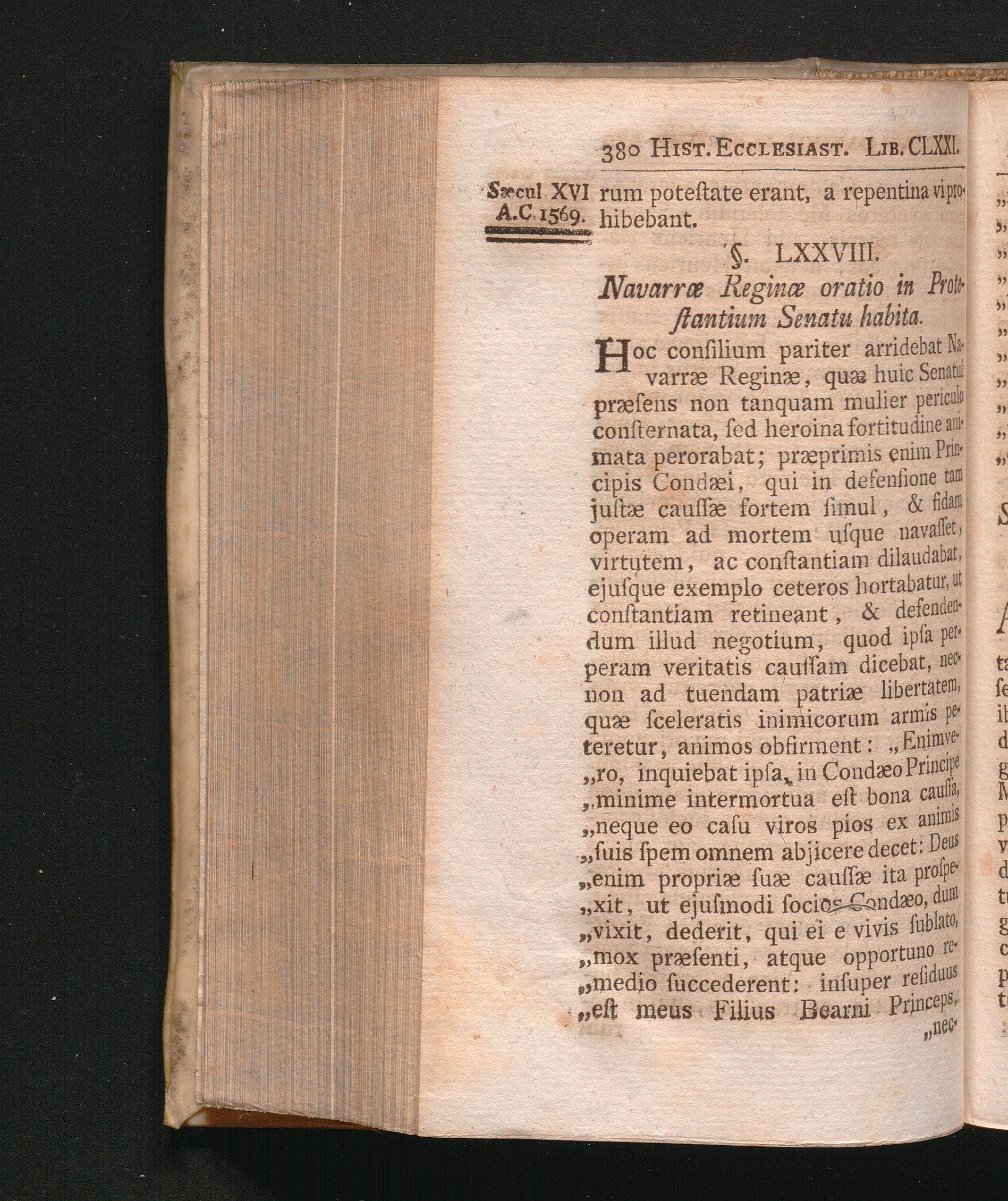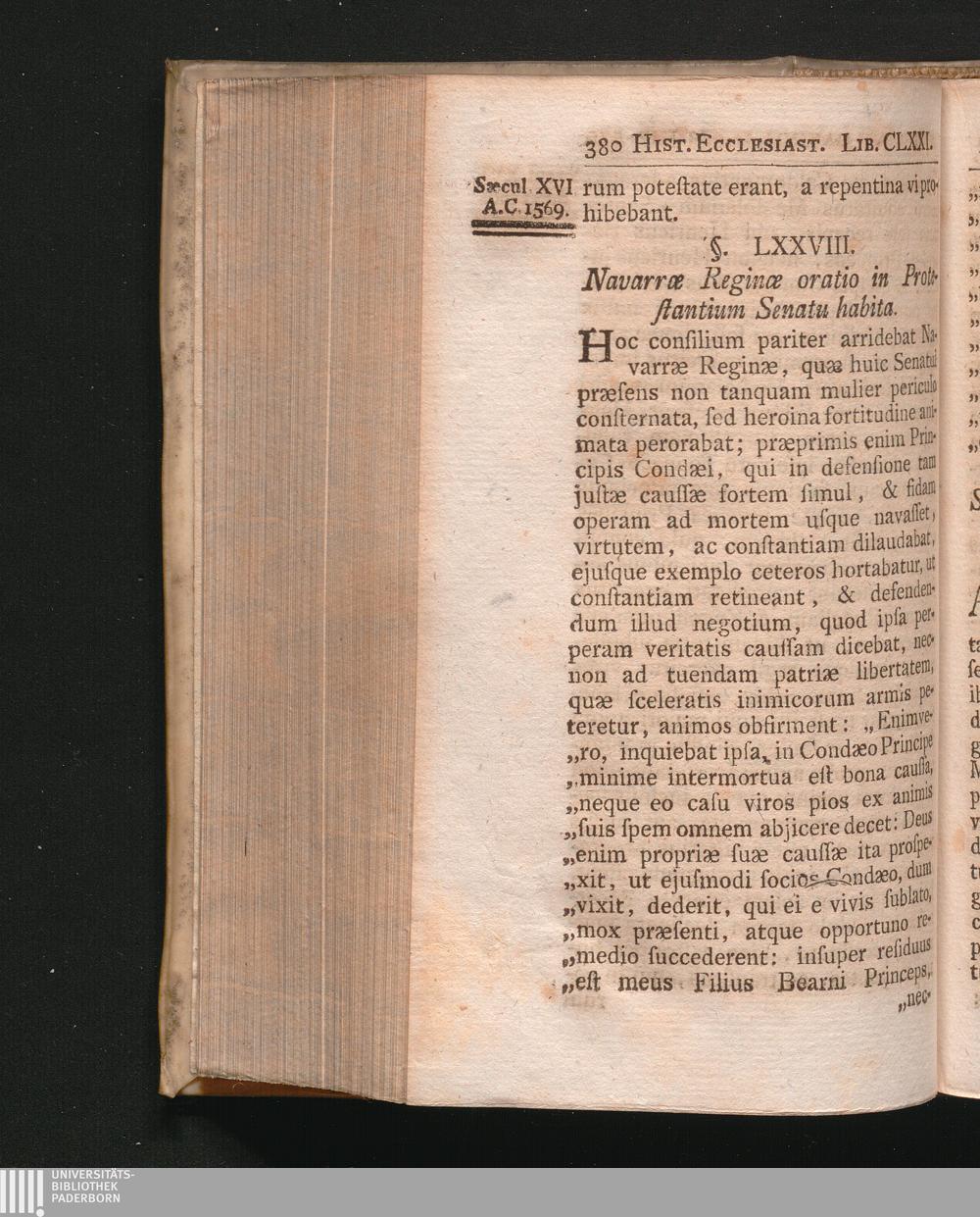 §. 78. Navarræ Reginæ Oratio in Protestantium Senatu habita.