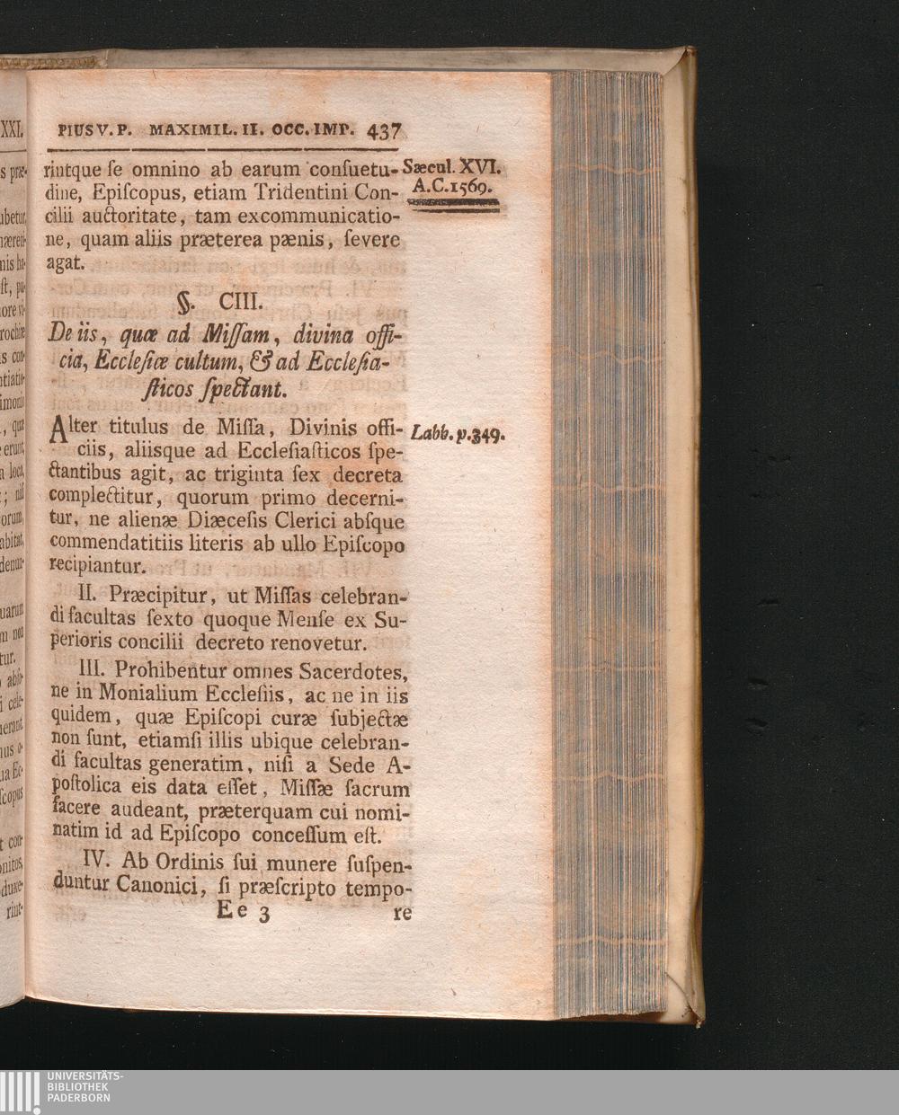 §. 103. De iis, quæ ad Missam, divina officia, Ecclesiæ cultum, & ad Ecclesiasticos[...]