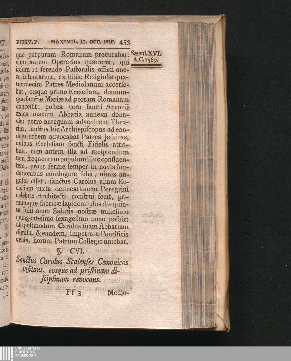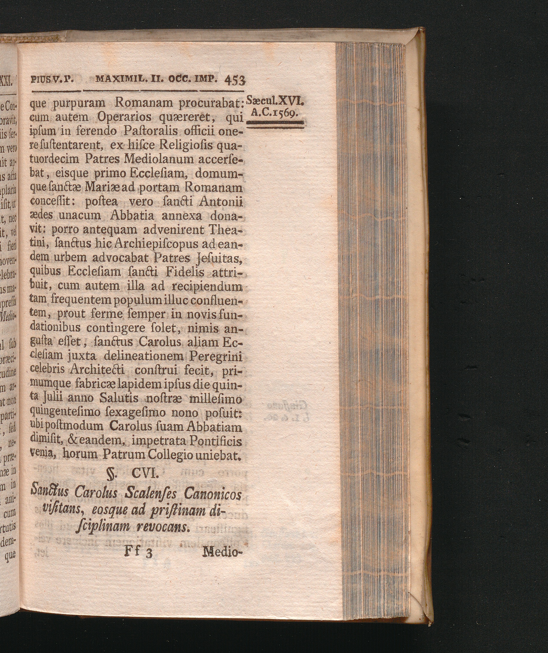 §. 106. Sanctus Carolus Scalenses Canonicos visitans, eosque ad pristinam disciplinam[...]