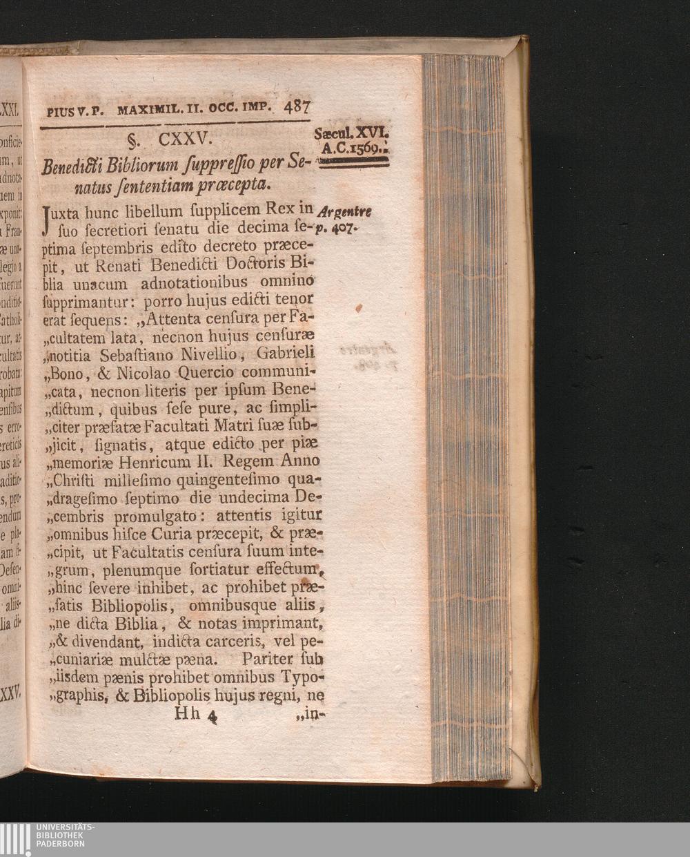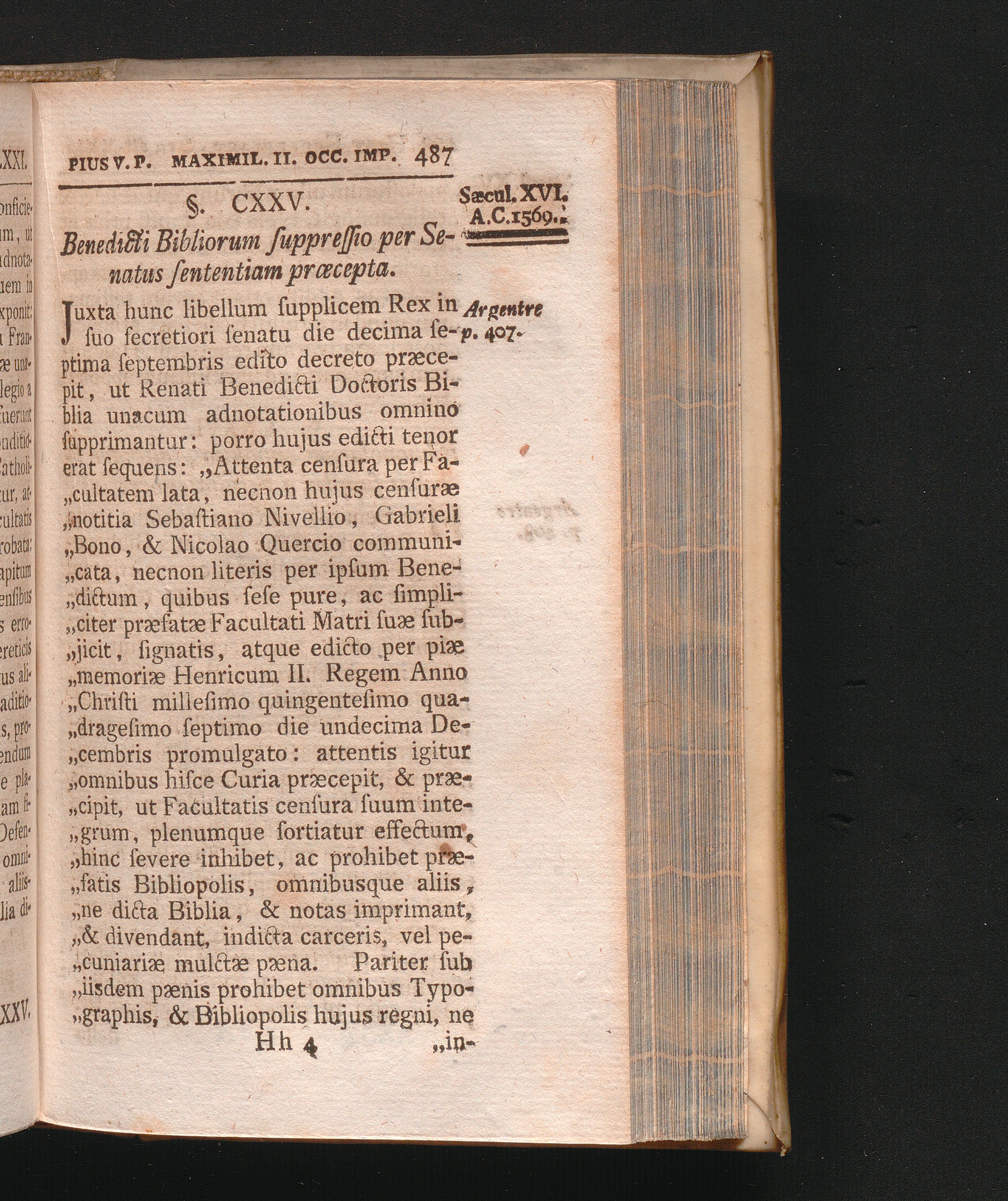 §. 125. Benedicti Bibliorum suppressio per Senstus sententiam præcepta.