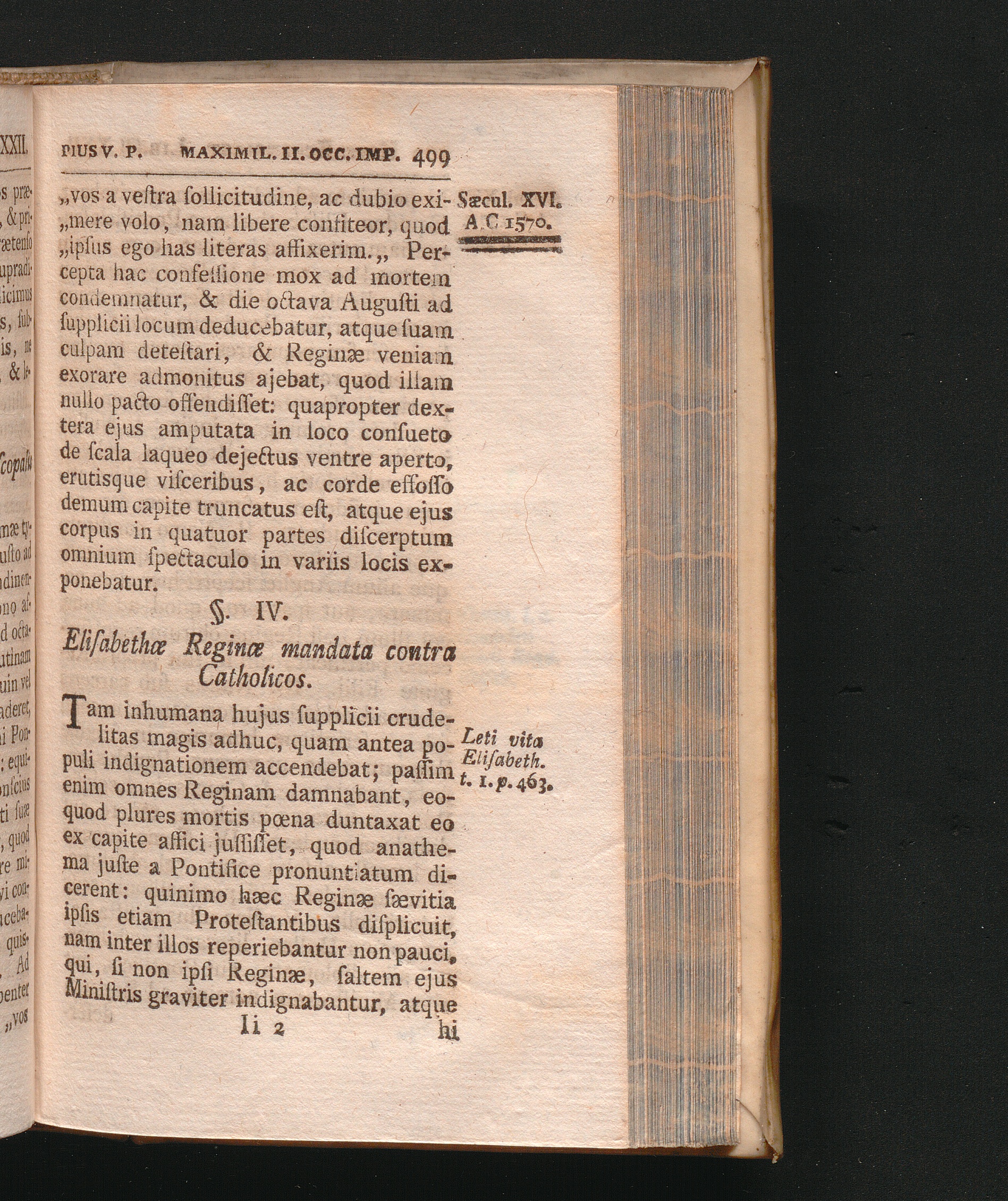 §. 4. Elisabethæ Reginæ mandata contra Catholicos.