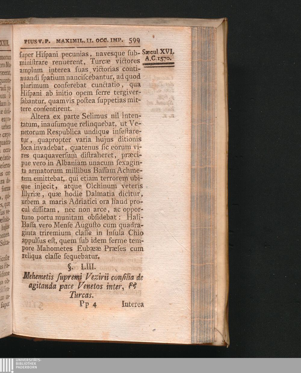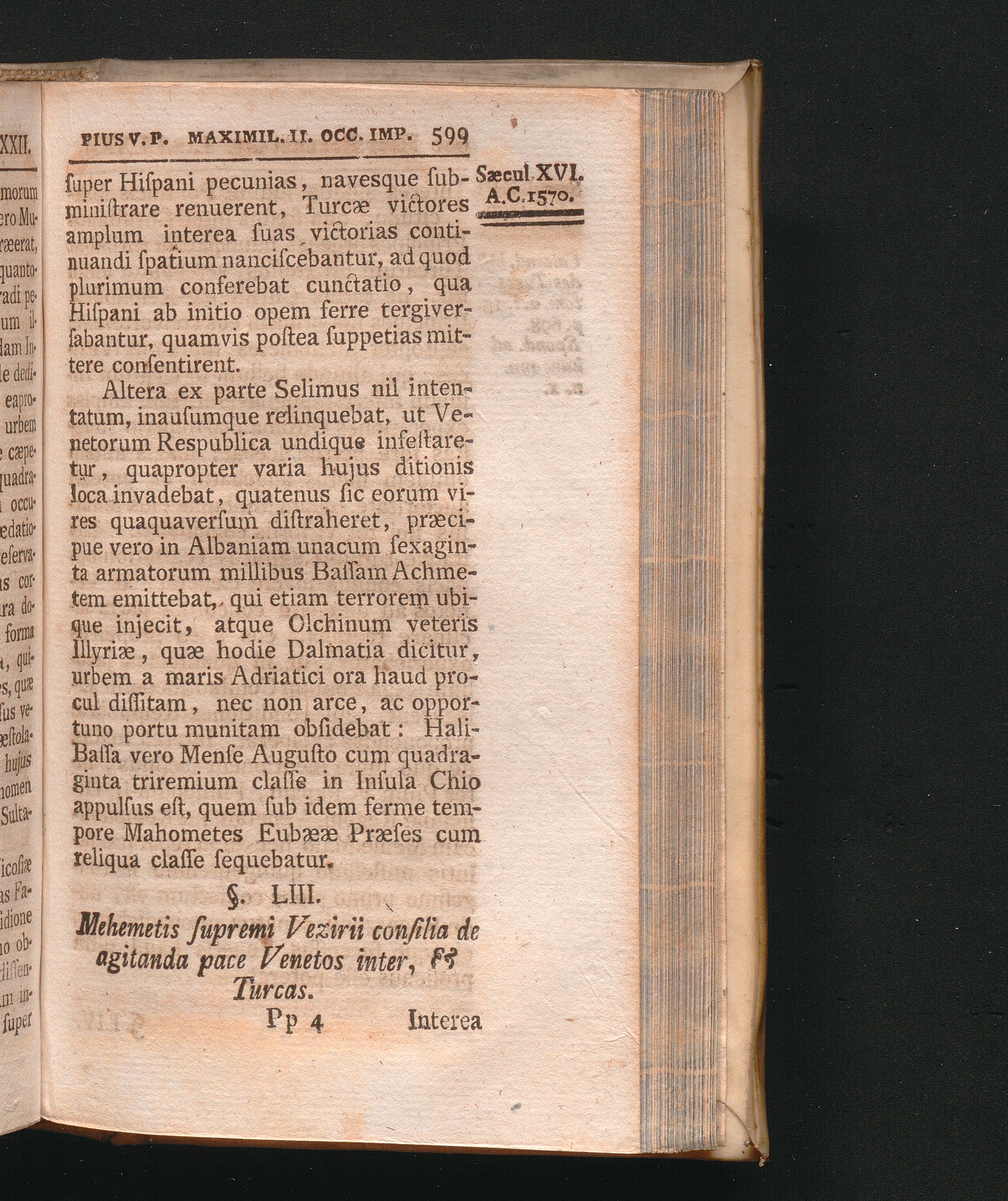 §. 53. Mehemetis supremi Vezirii consilia de agitanda pace Venetos inter, & Turc[...]