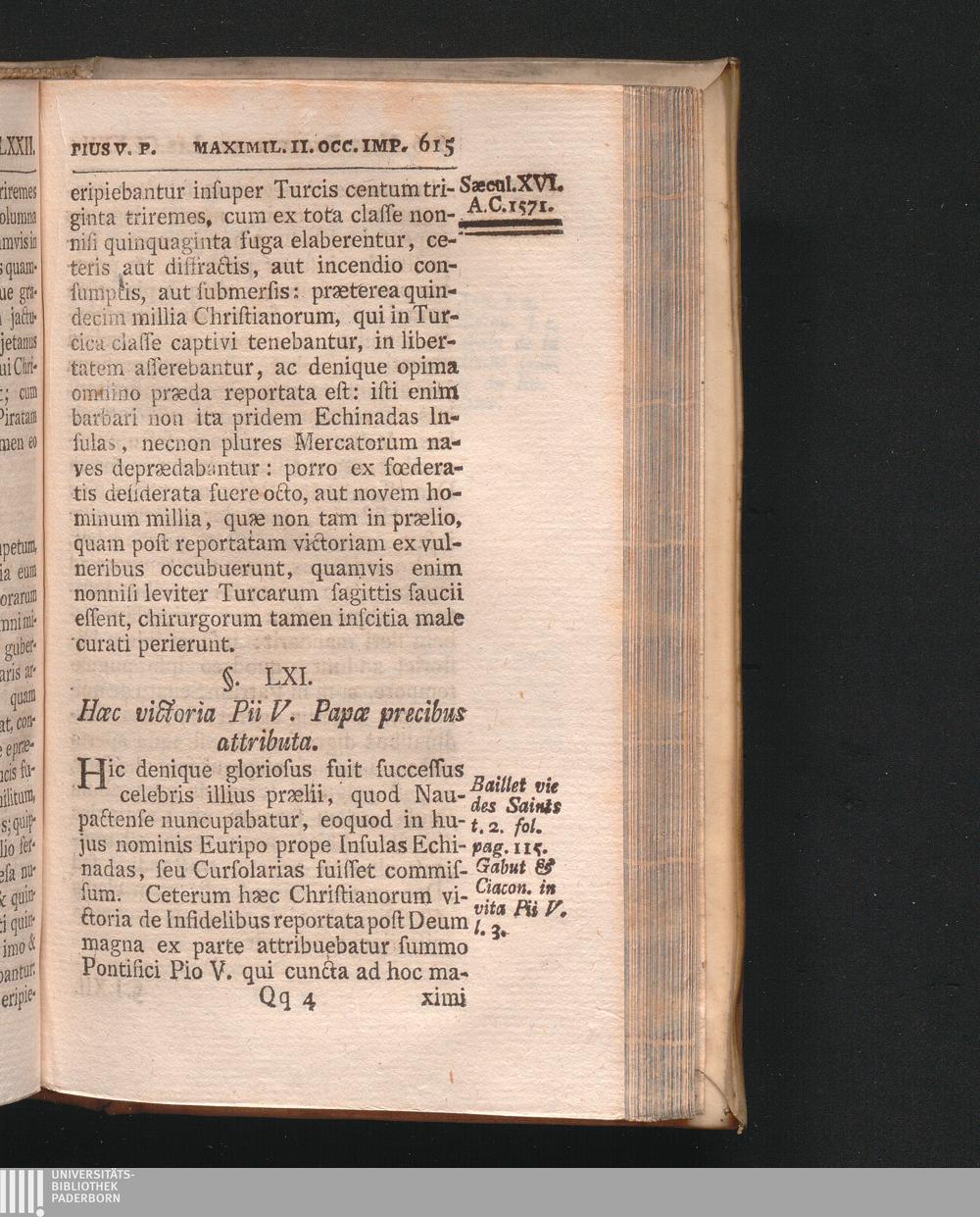 §. 61. Hæc victoria Pii V. Papæ precibus attributa.