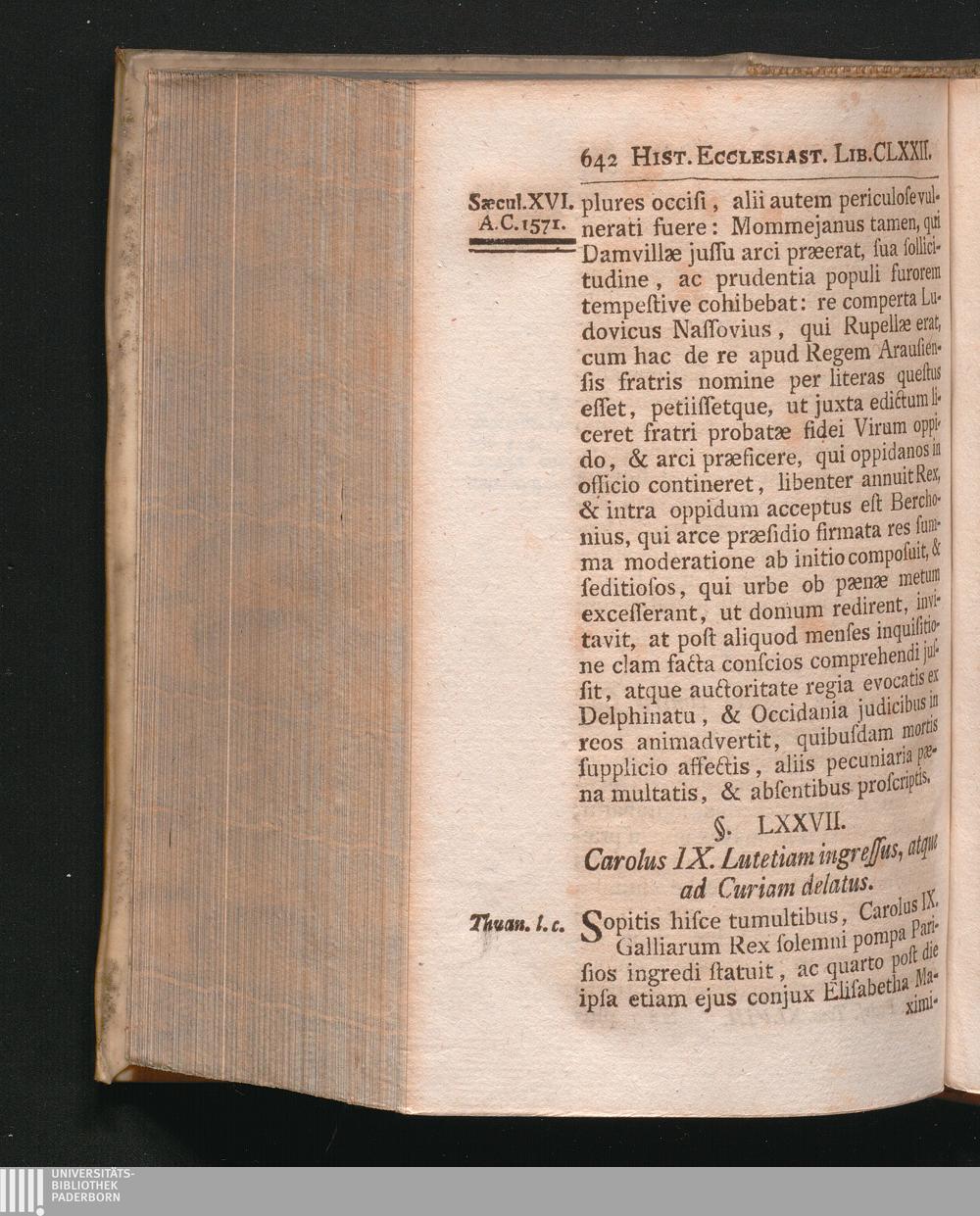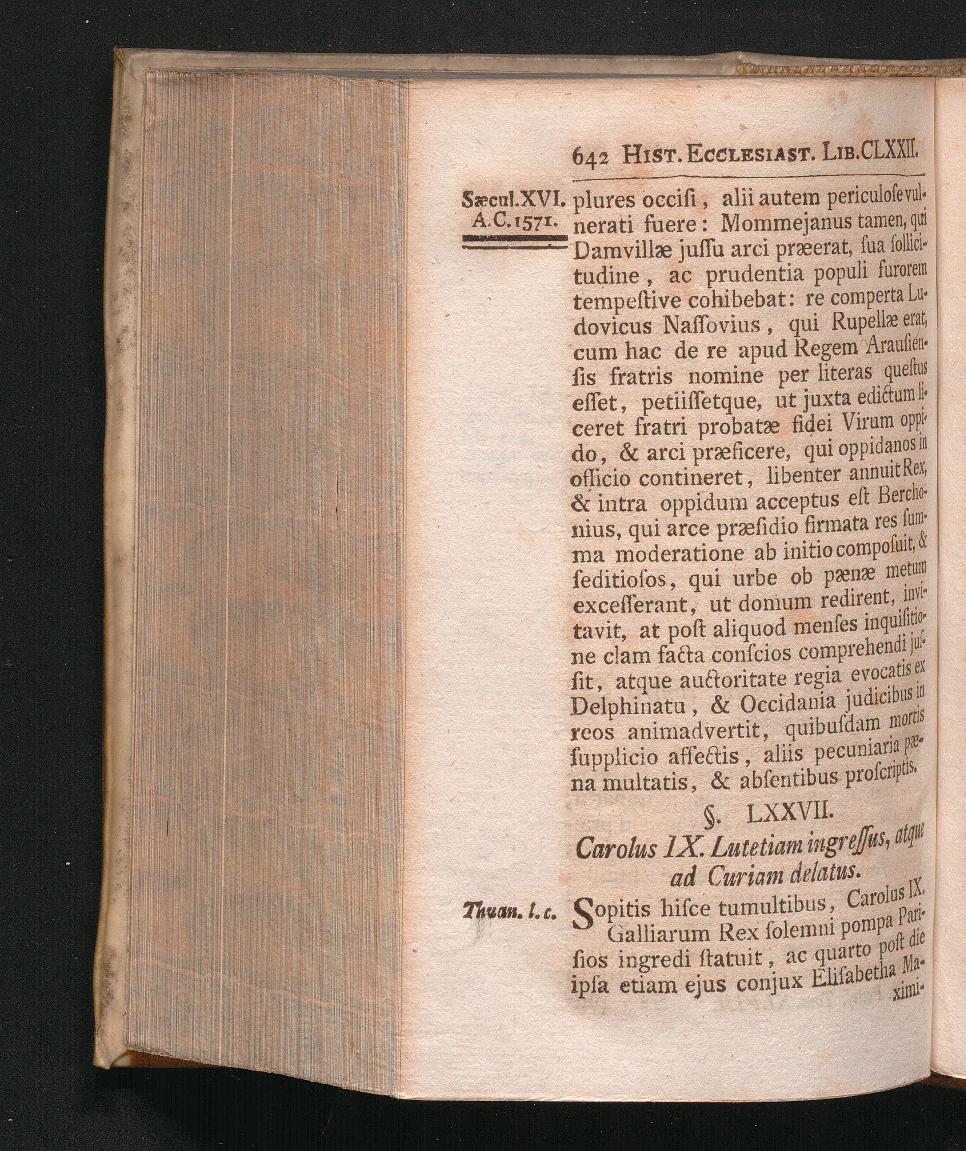 §. 77. Carolus IX. Lutetiam ingressus, atque ad Curiam delarus.