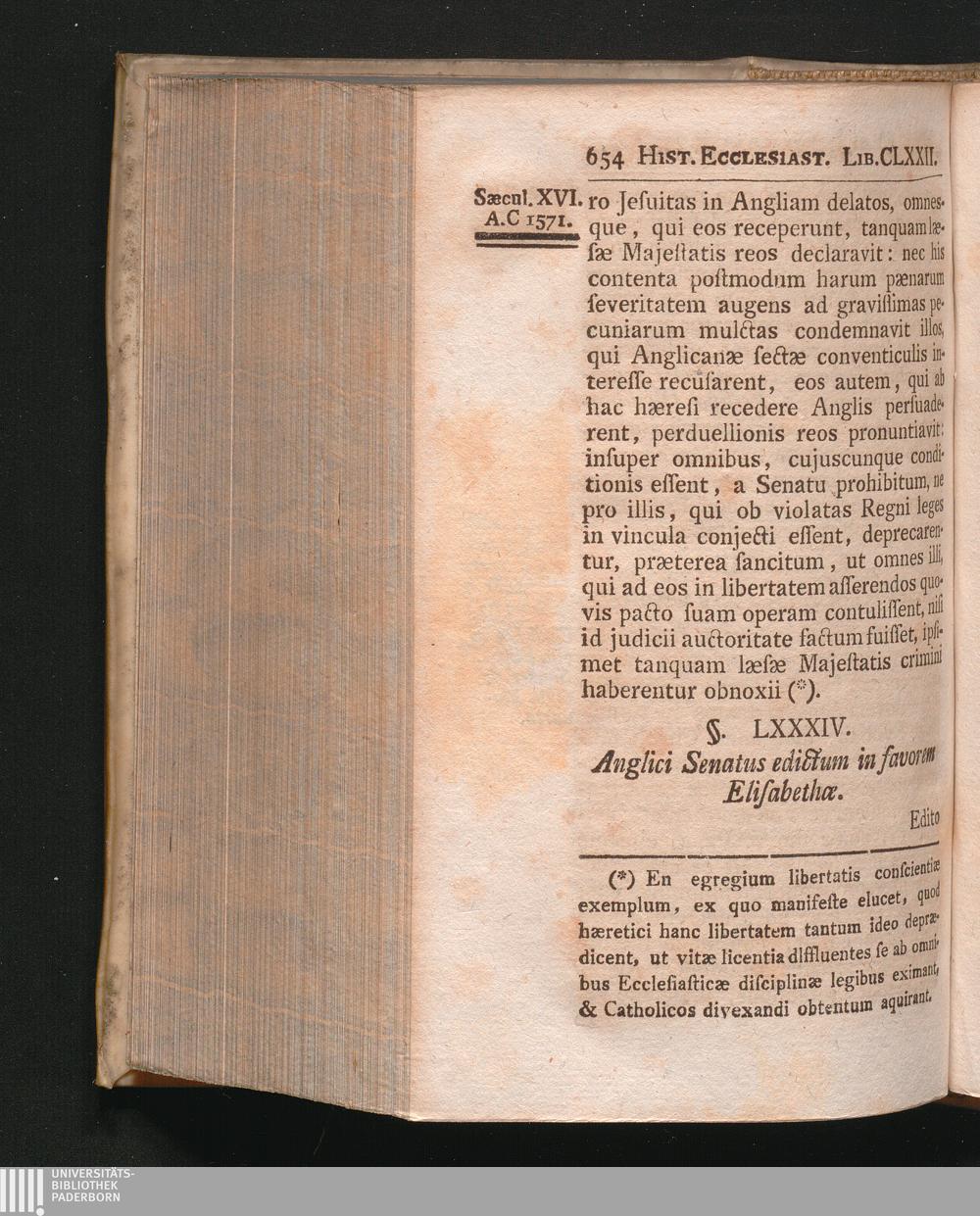 §. 84. Anglici Senatus edictum in favorem Elisabethæ.