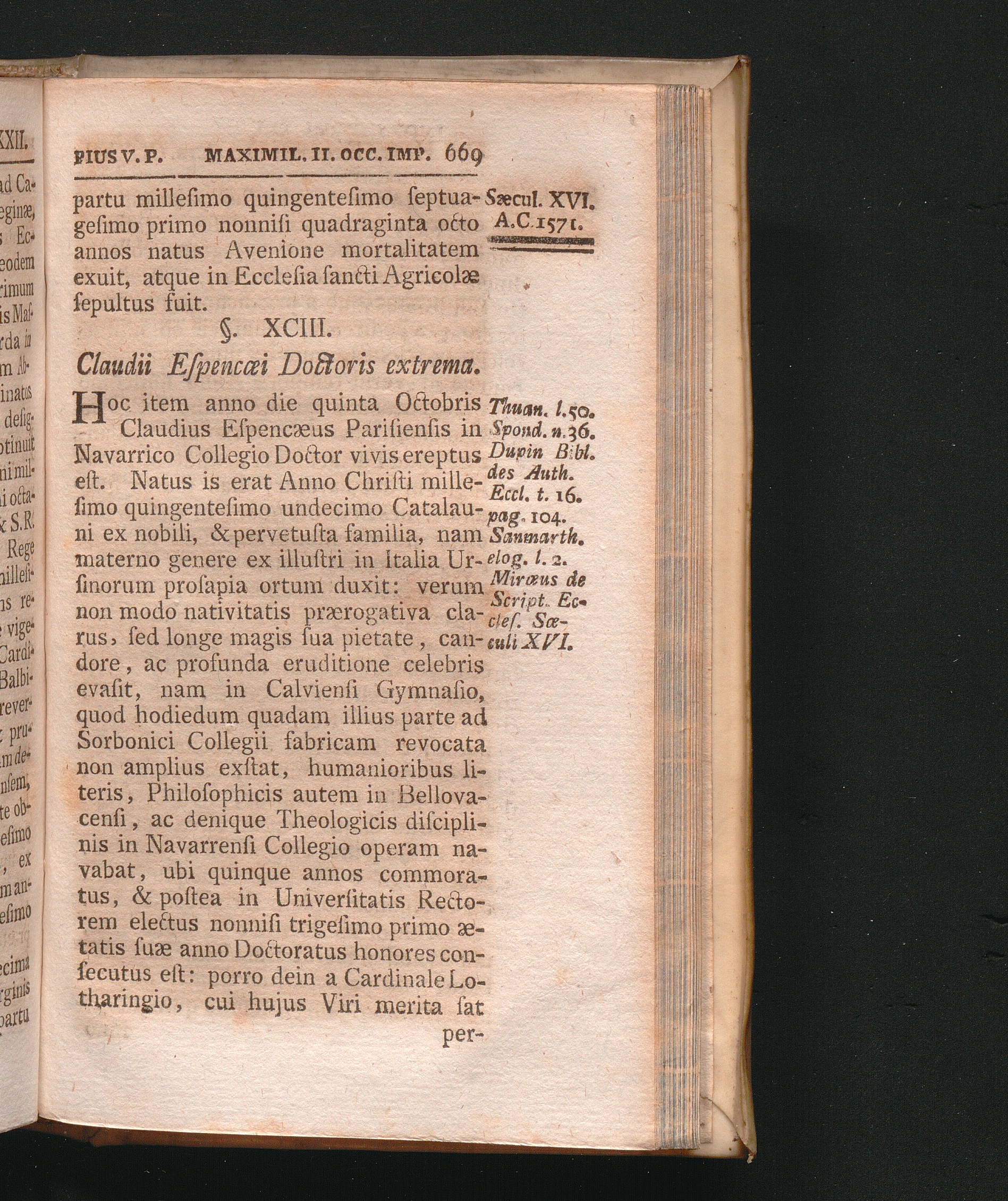 §. 93. Claudii Espencæi Doctoris extrema.