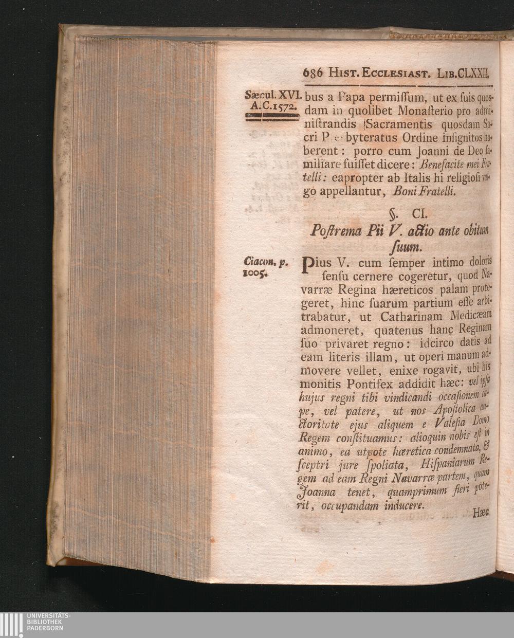 §. 101. Postrema Pii V. actio ante obitum suum.