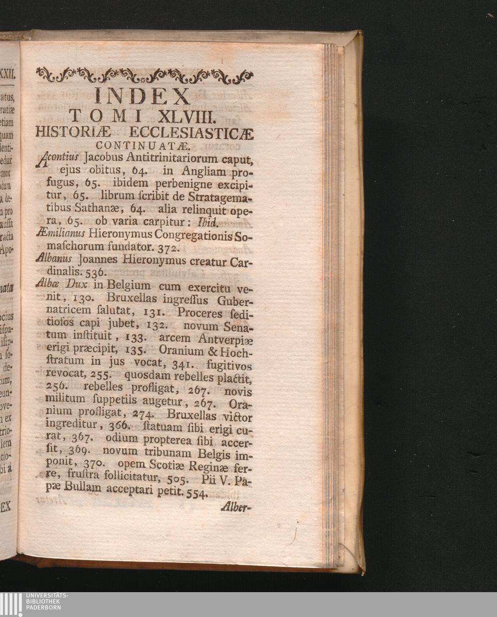 Index Tomi XLVIII. Historiæ Ecclesiasticæ Continuatæ.