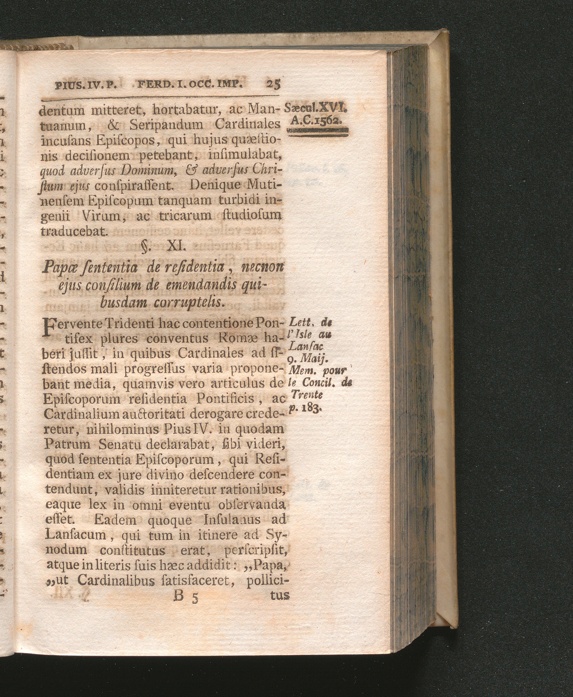 §. 11. Papæ Sententia de residentia, nec non ejus consilium de emendandis quibusdam[...]
