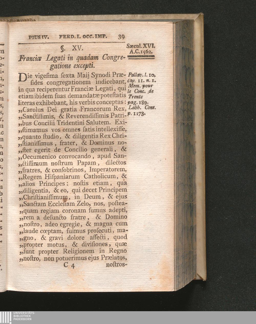 §. 15. Franciæ Legati in quadam Congregatione excepti.