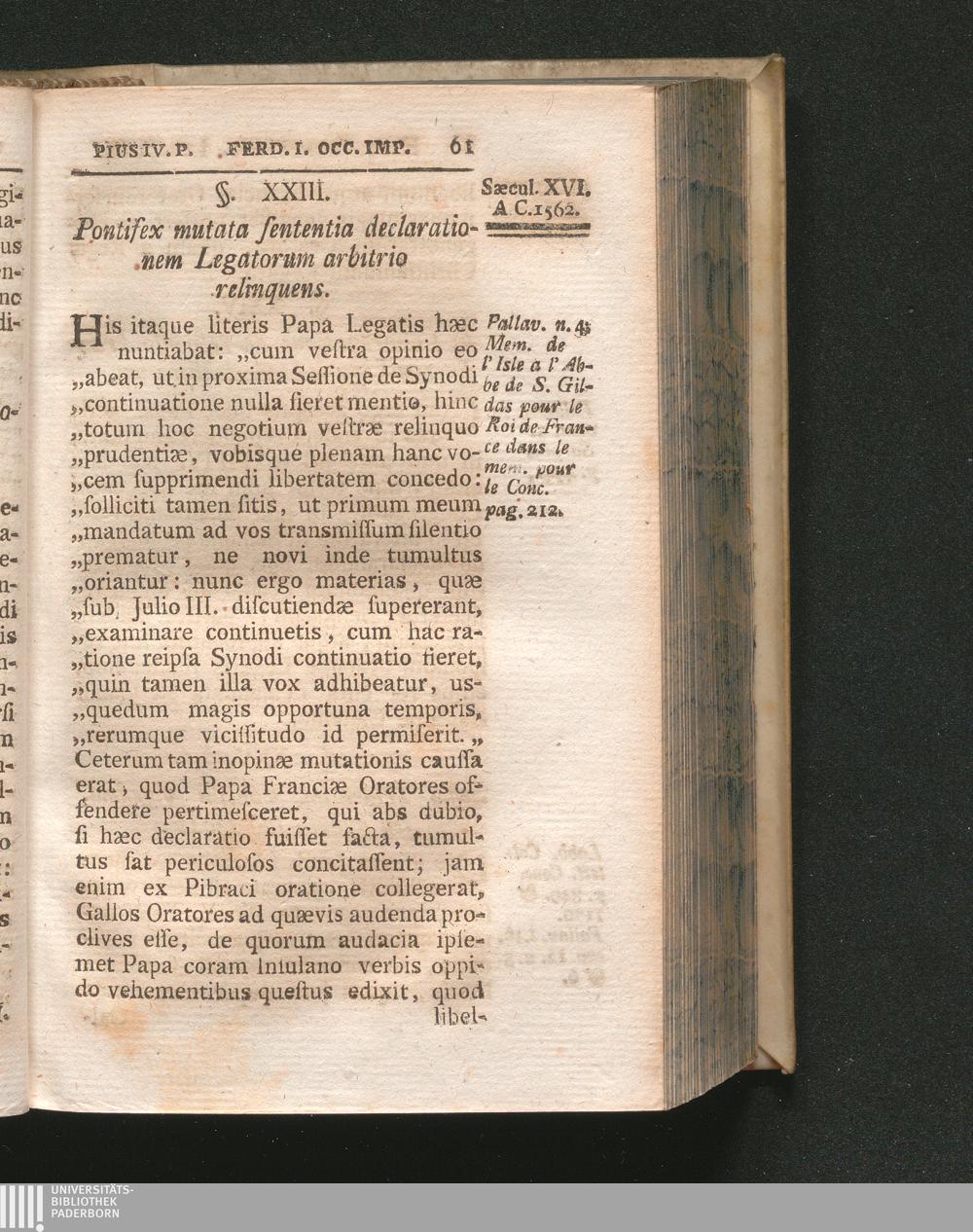 §. 23. Pontifex mutata sententia declarationem Legatorum arbitrio reliquens.