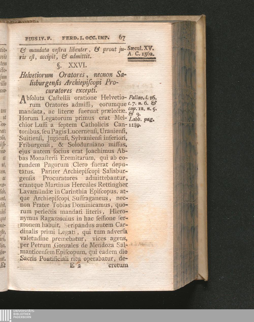 §. 26. Helvetiorum Oratores, nec non Salisburgensis Archiepiscopi Procuratores e[...]