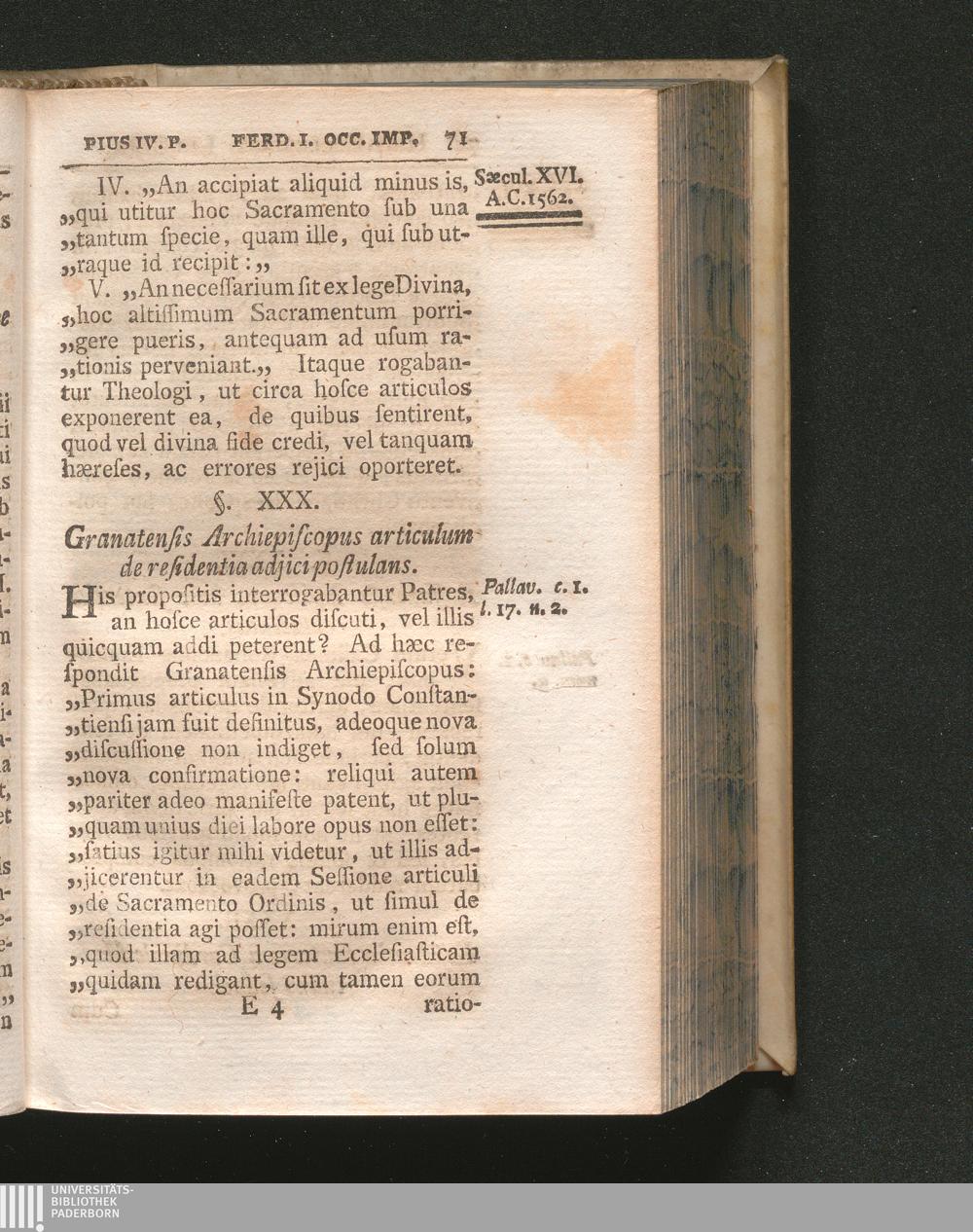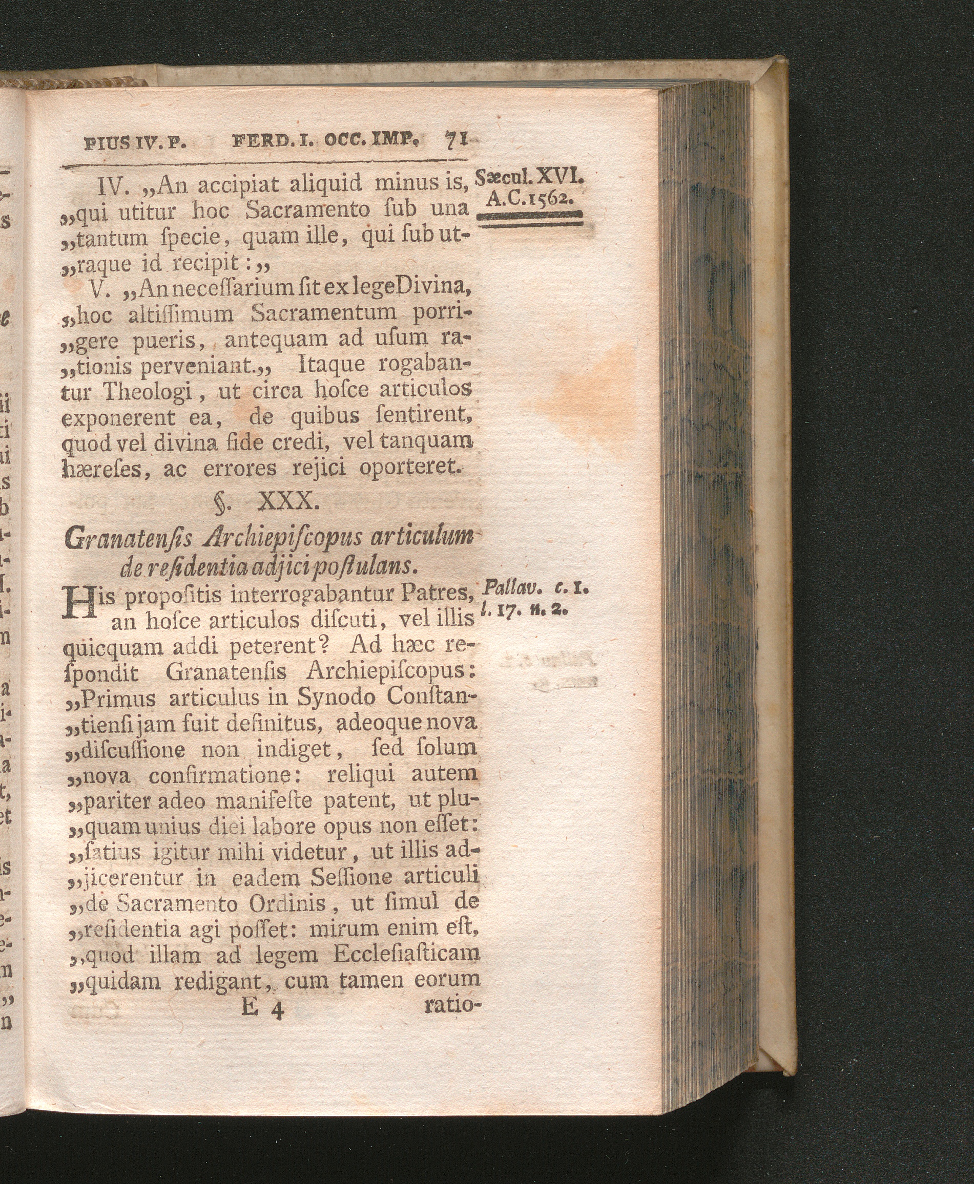 §. 30. Granatensis Archiepiscopus articulum de residentia adjici postulans.