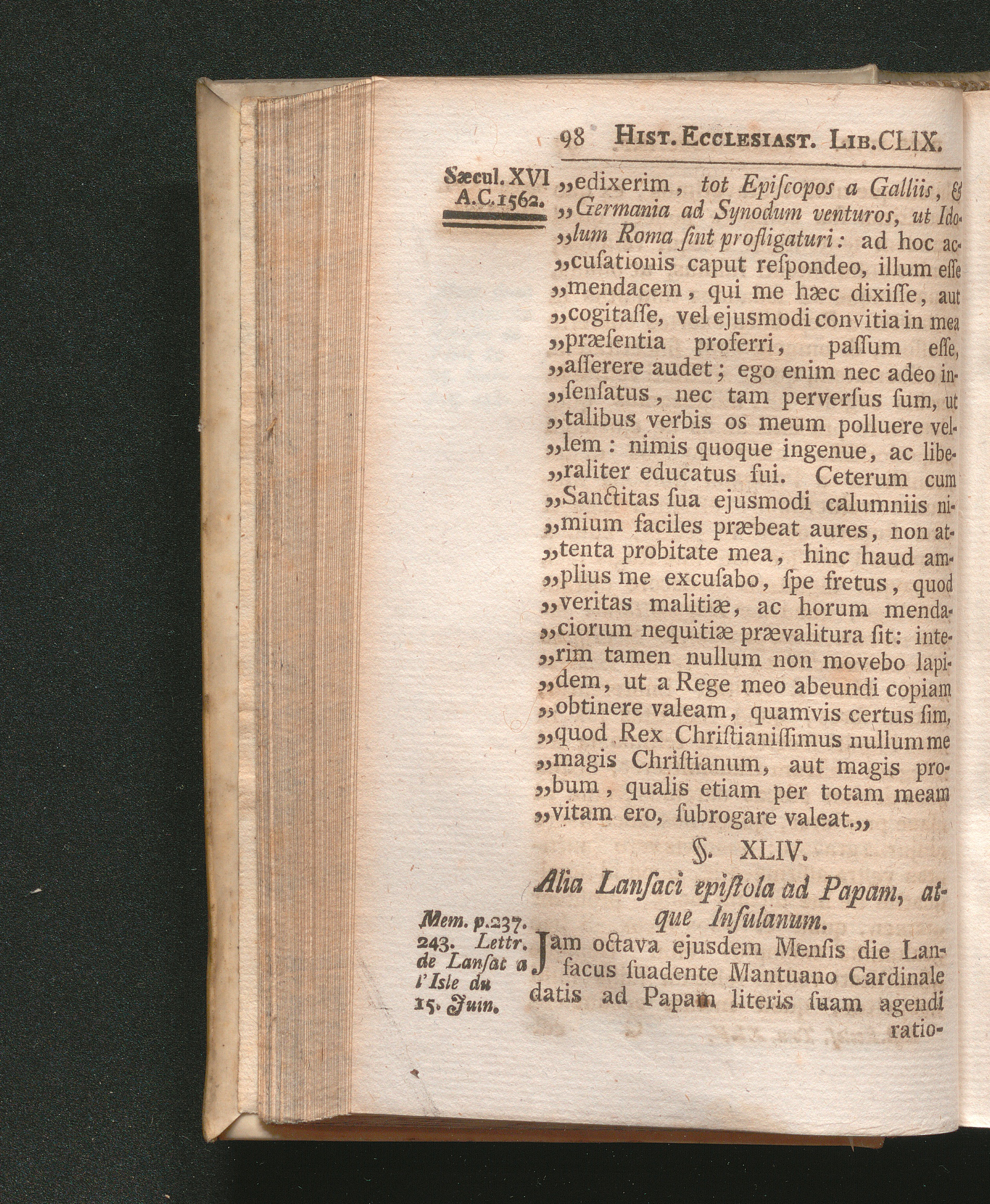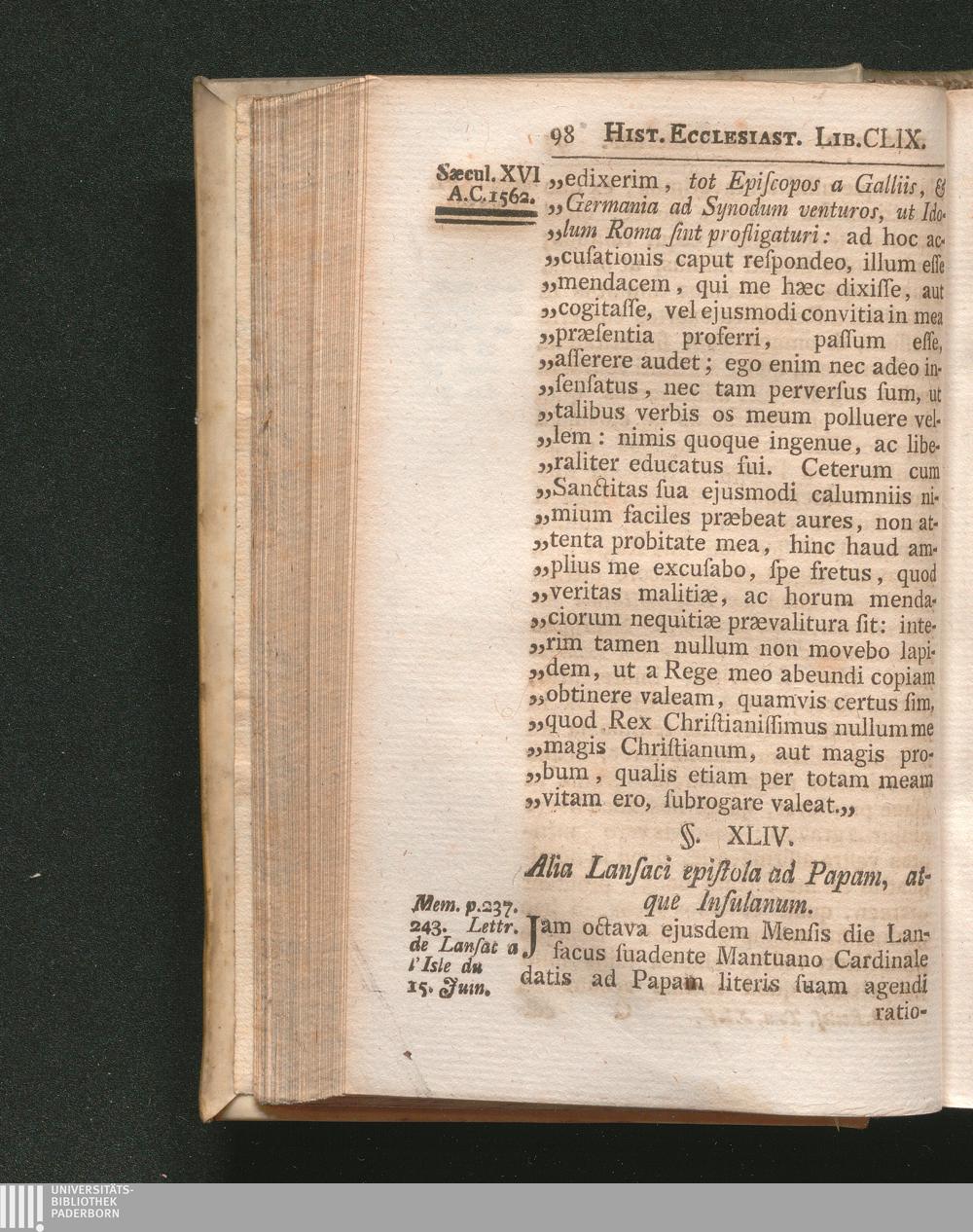 §. 44. Alia Lansaci epistola ad Papam, atque Insulanum.