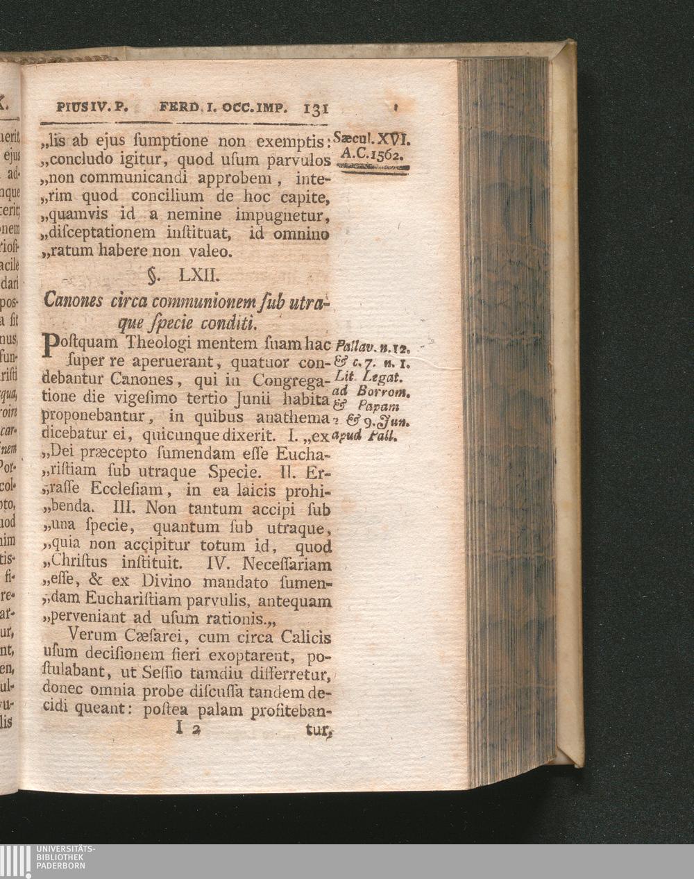 §. 62. Canones circa communionem sub utraque specie conditi.
