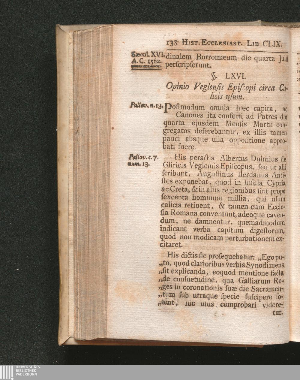 §. 66. Opinio Veglensis Episcopi circa Calicis usum.