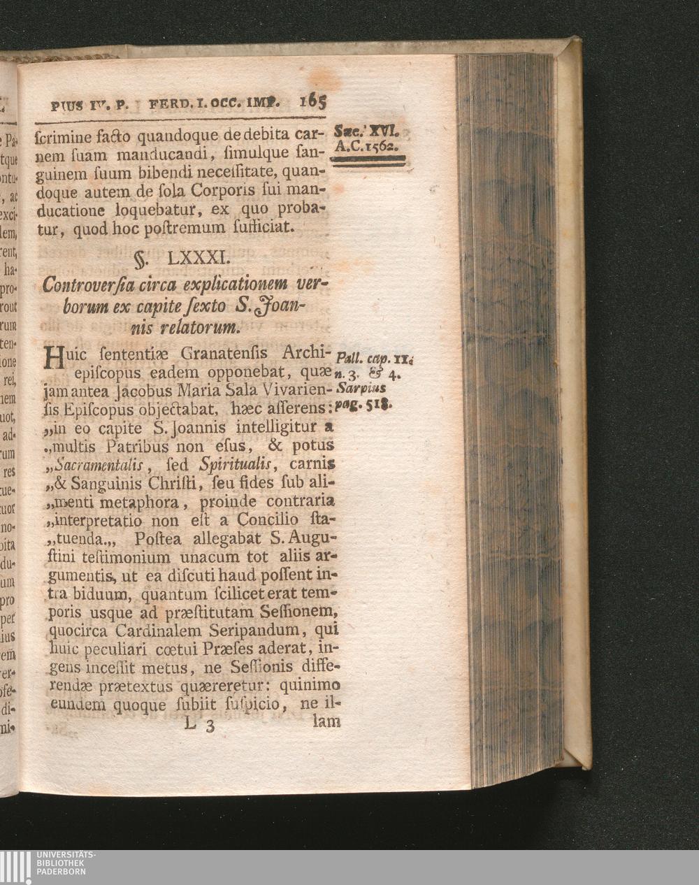 §. 81. Controversia circa explicationem verborum ex capite sexto S. Joannis rela[...]