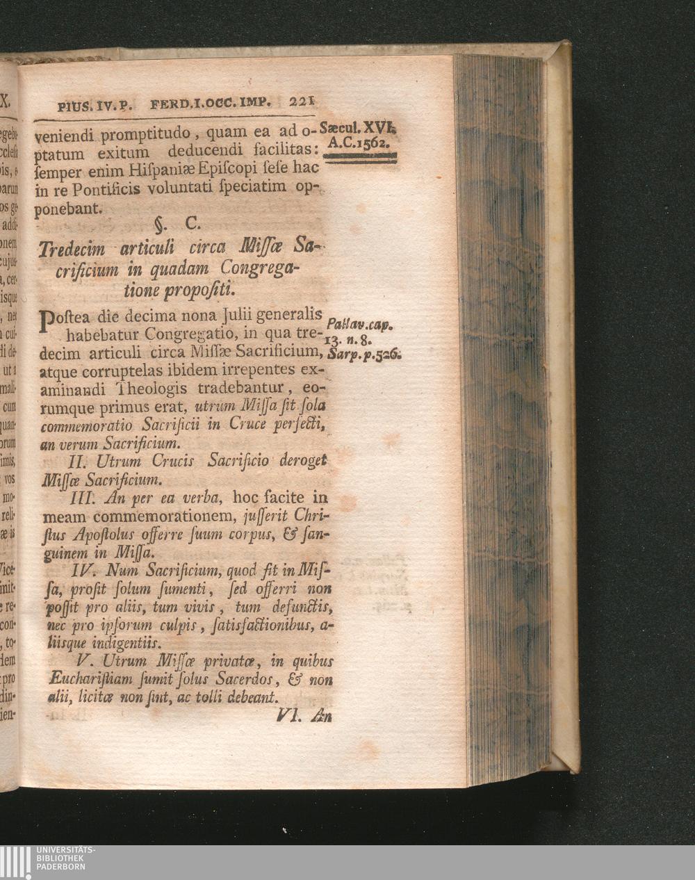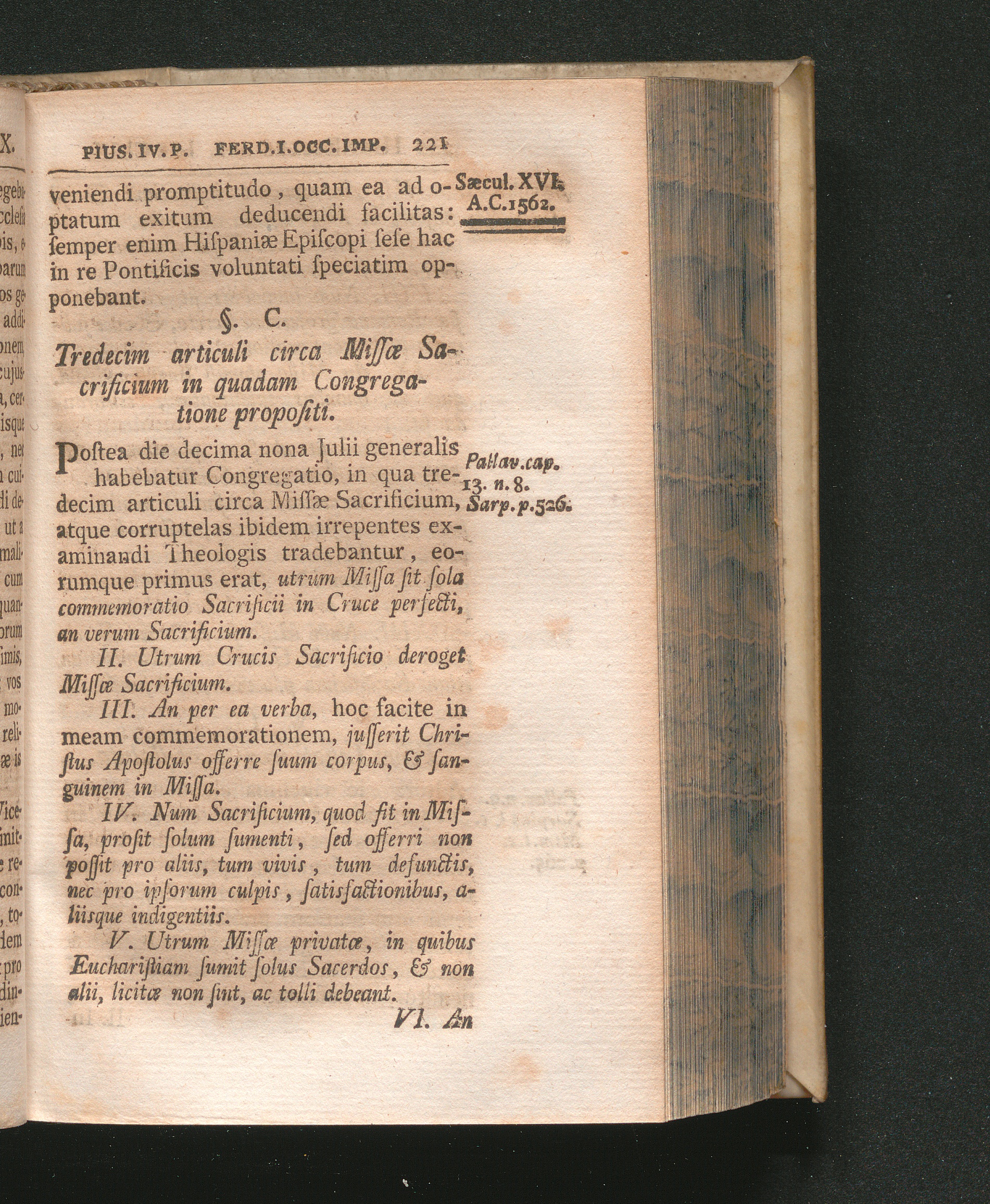 §. 100. Tredecim articuli circa Missæ Sacrificium in quadam Congregatione propos[...]
