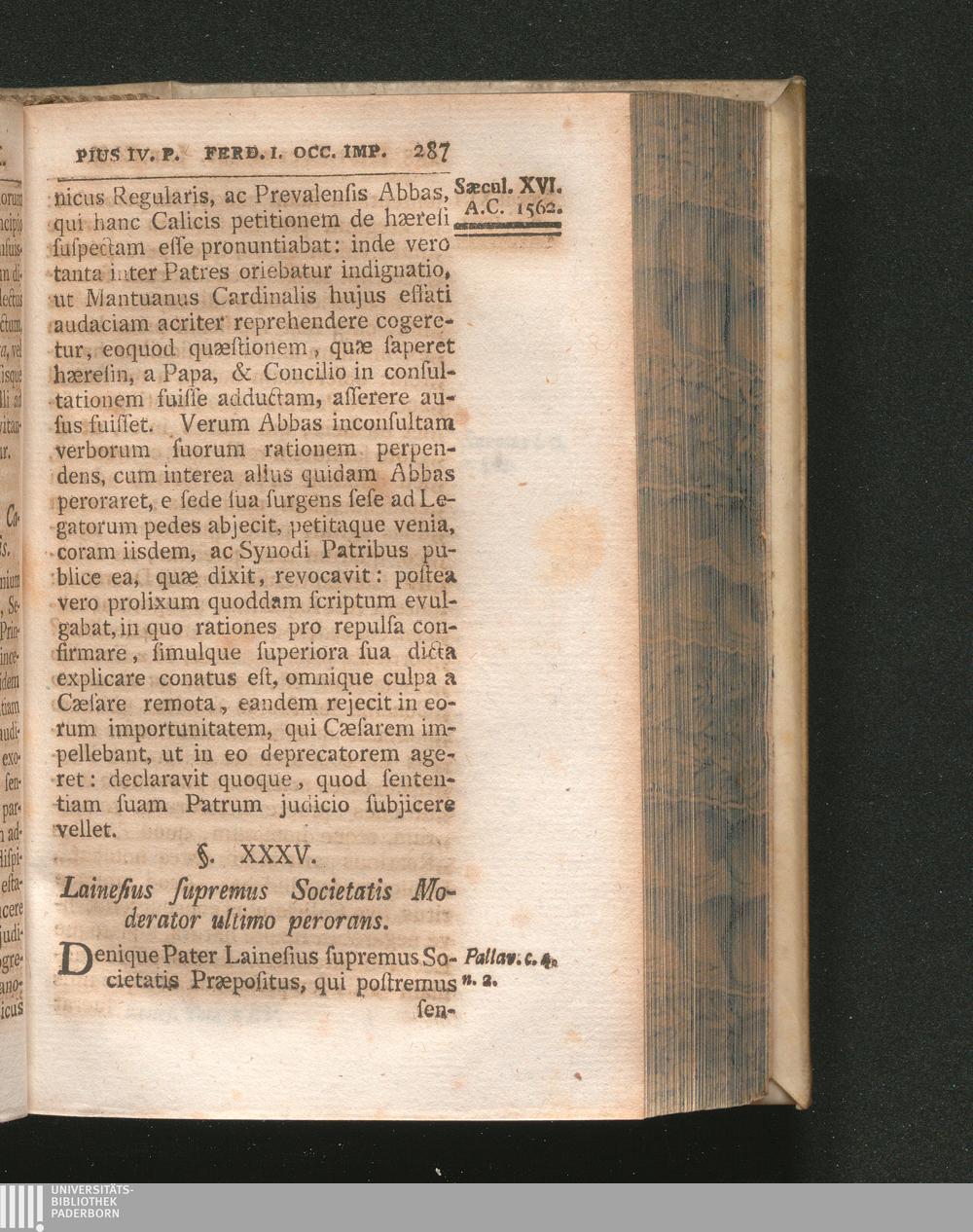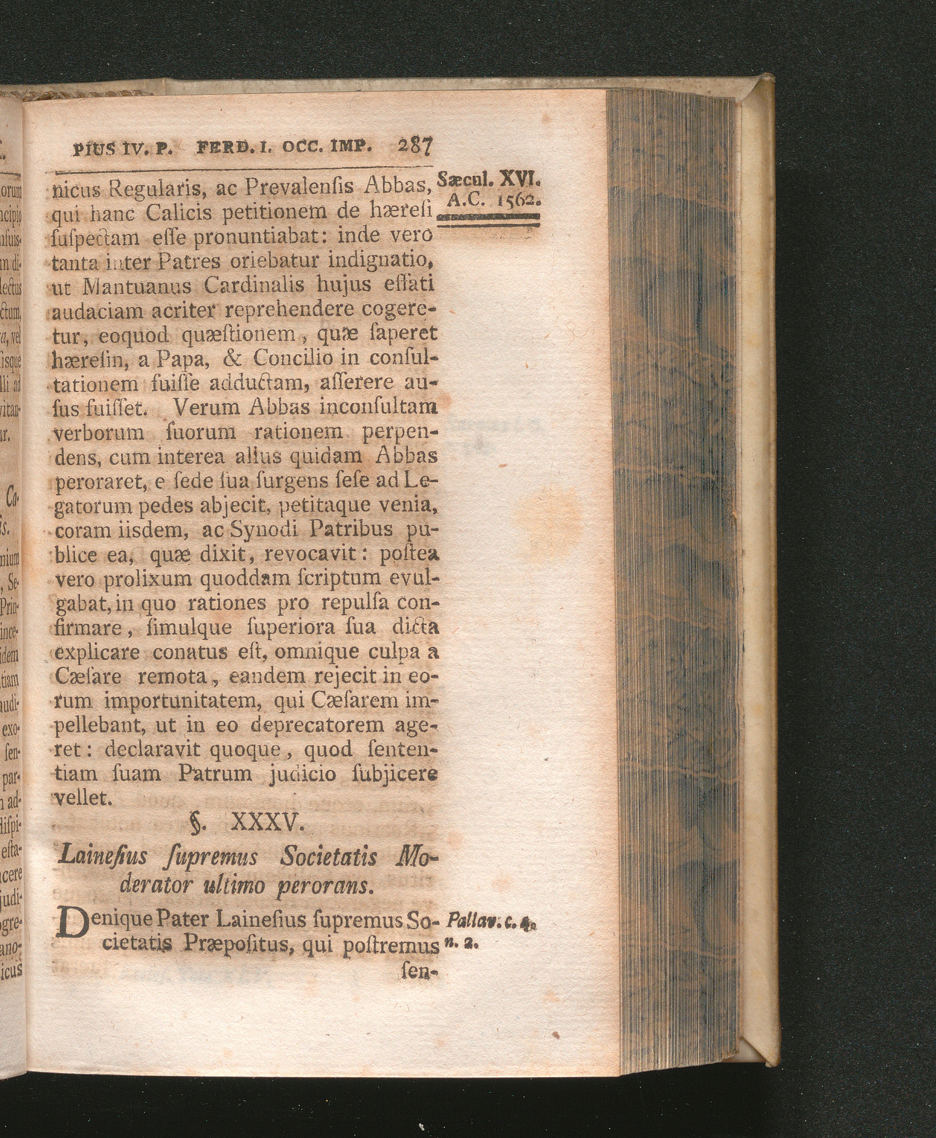 §. 35. Lainesius Supremus Societatis Moderator ultimo perorans.