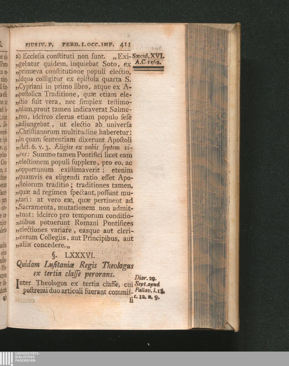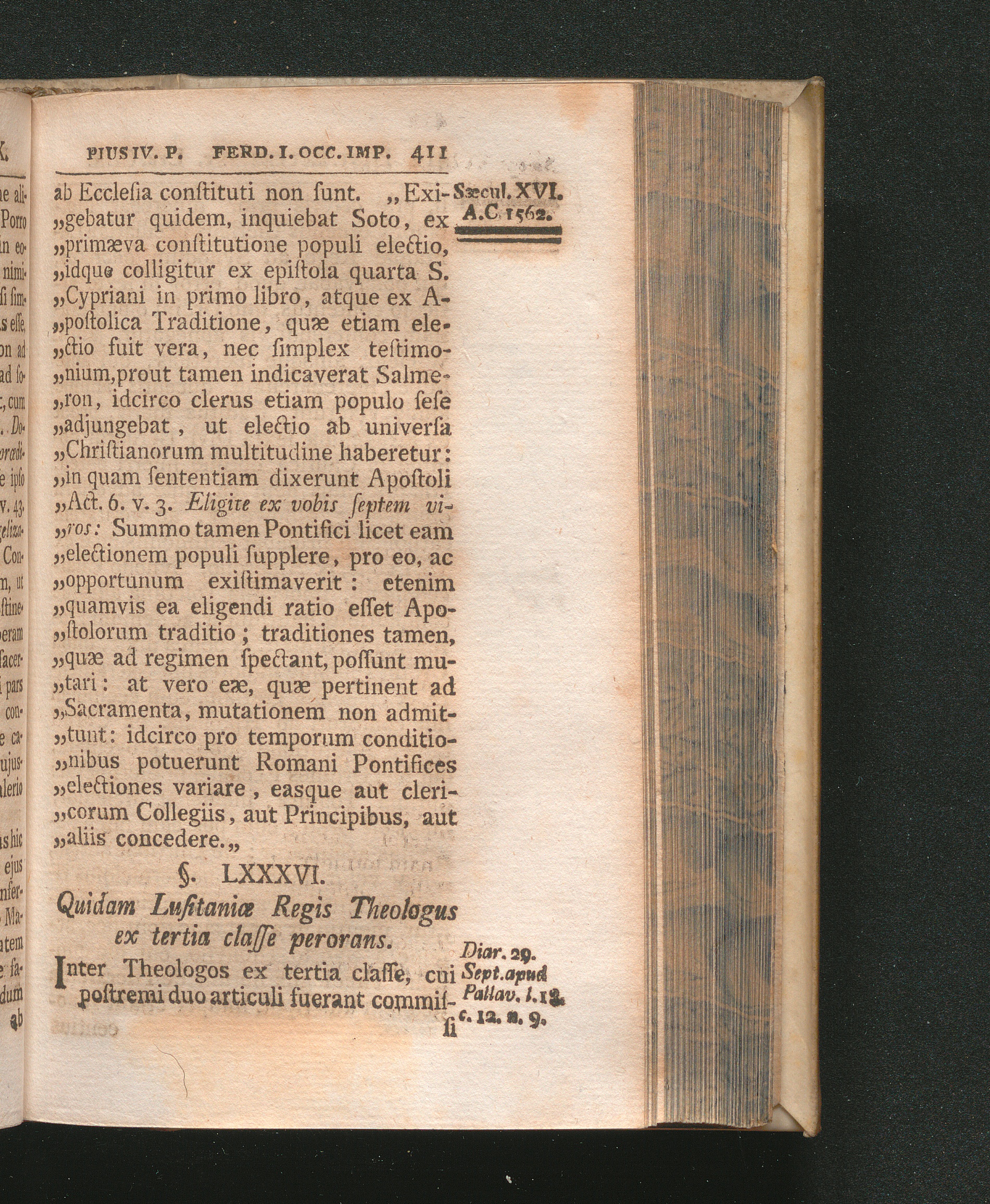 §. 86. Quidam Lusitaniæ Regis Theologus ex tertia classe perorans.