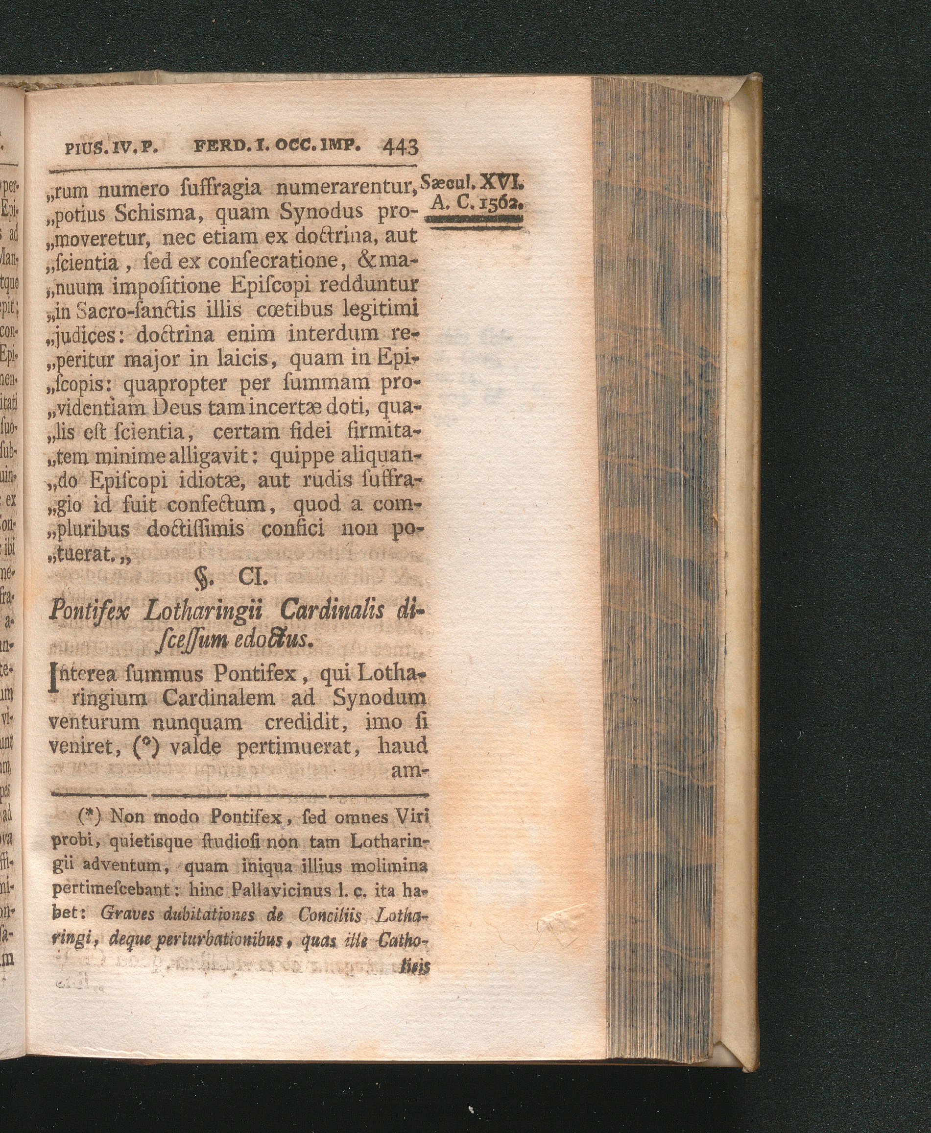 §. 101. Pontifex Lotharingii Cardinalis discessum edoctus.