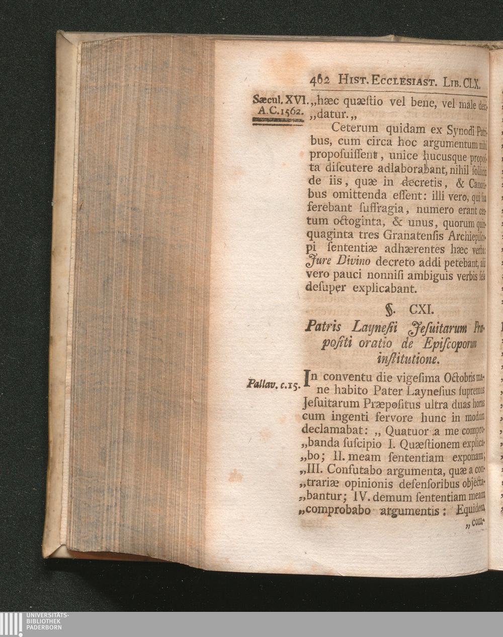 §. 111. Patris Laynesii Jesuitarum Præpositi oratio de Episcoporum institutione.