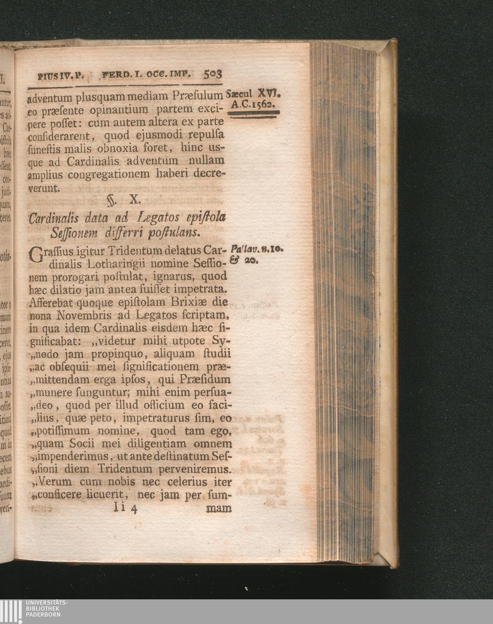 §. 10. Cardinalis data ad Legatos epistola Sessionem differri postulans.
