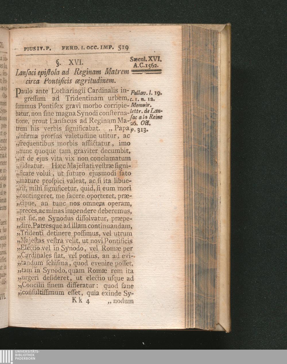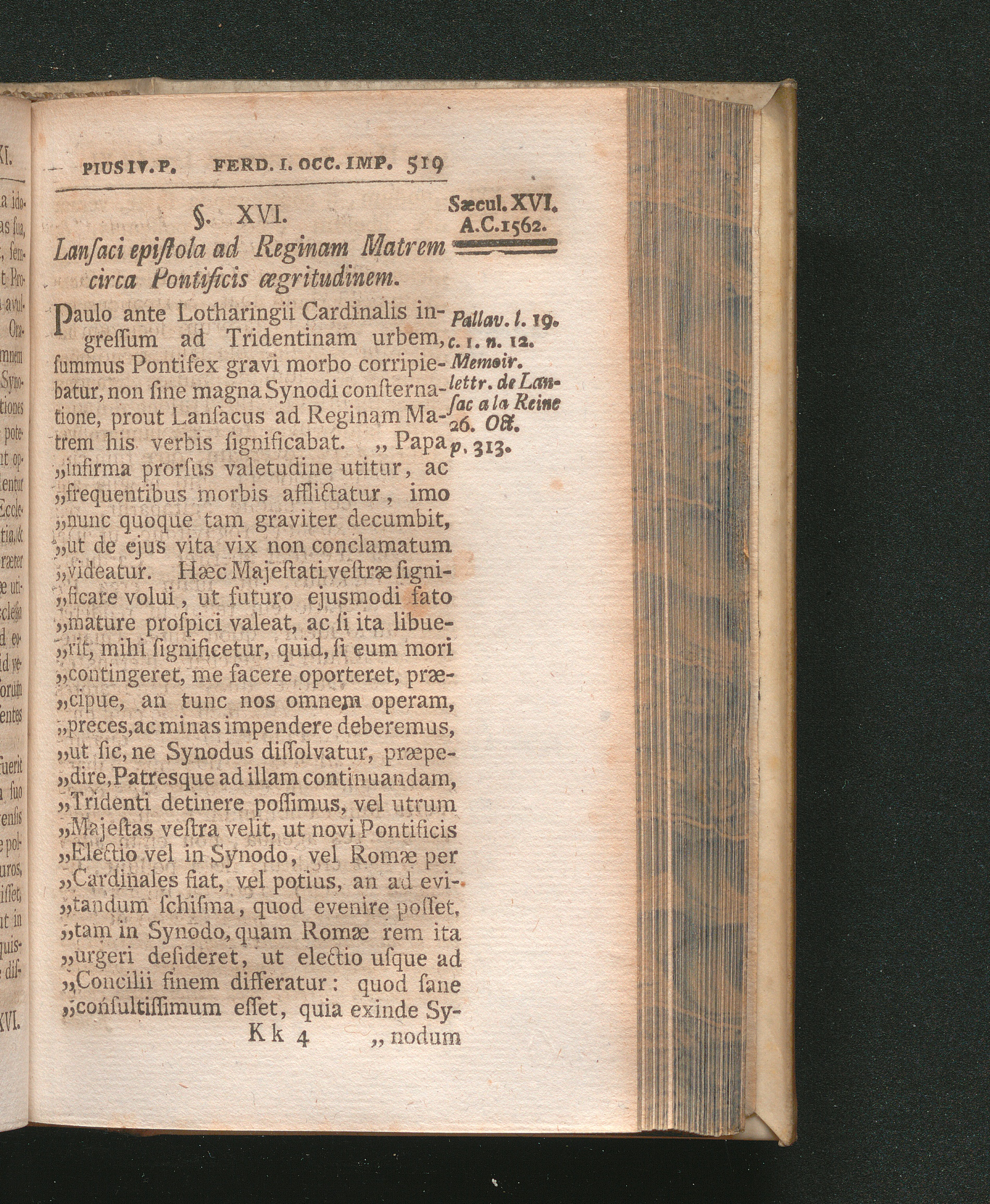 §. 16. Lansaci epistola ad Reginam Matrem circa Pontificis ægritudinem.